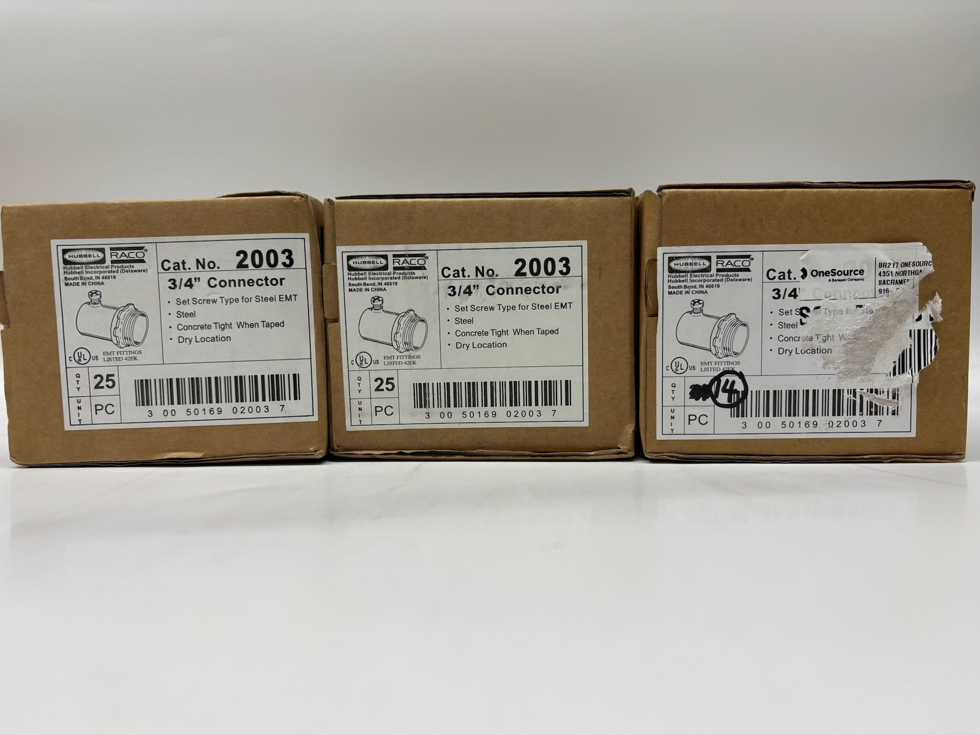 The Raco 2003 3/4 in. EMT Set-Screw Connector (Uninsulated) is a reliable electrical fitting designed for connecting 3/4 inch EMT (Electrical Metallic Tubing) conduit to a junction box or another conduit. Featuring a set-screw design, it ensures a secure and firm connection, making it ideal for both residential and commercial electrical systems. This connector is uninsulated, meaning it doesn't offer extra protection against electrical shorts or grounding, making it suitable for applications where grounding is handled separately or not required. Constructed from durable metal, it provides long-lasting performance and is UL listed for safety and compliance with electrical codes. This connector is an essential part of EMT conduit installations, ensuring proper and secure conduit connections.