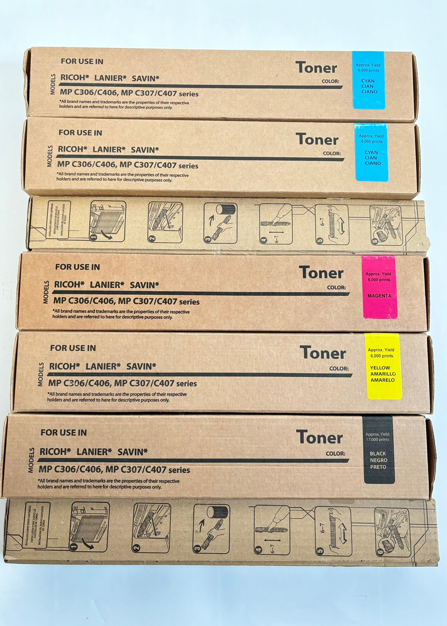 7 Compatible Ricoh MPC306,C406,C307 CCCMYKK Toners (replace 842091,92,93,94)