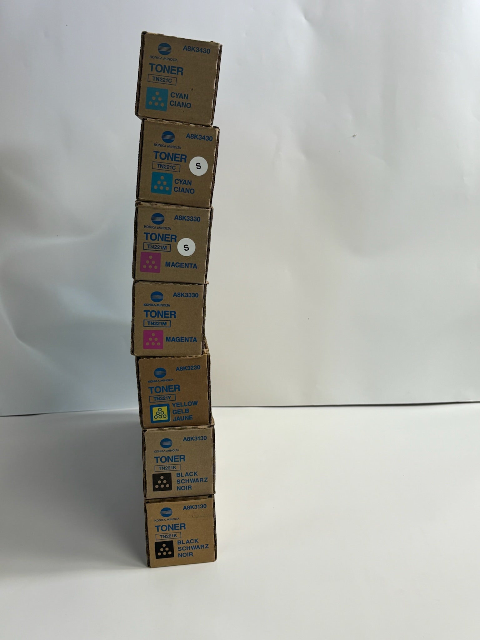 Lot Of 7 Genuine Konica TN221 CCMMYKK
