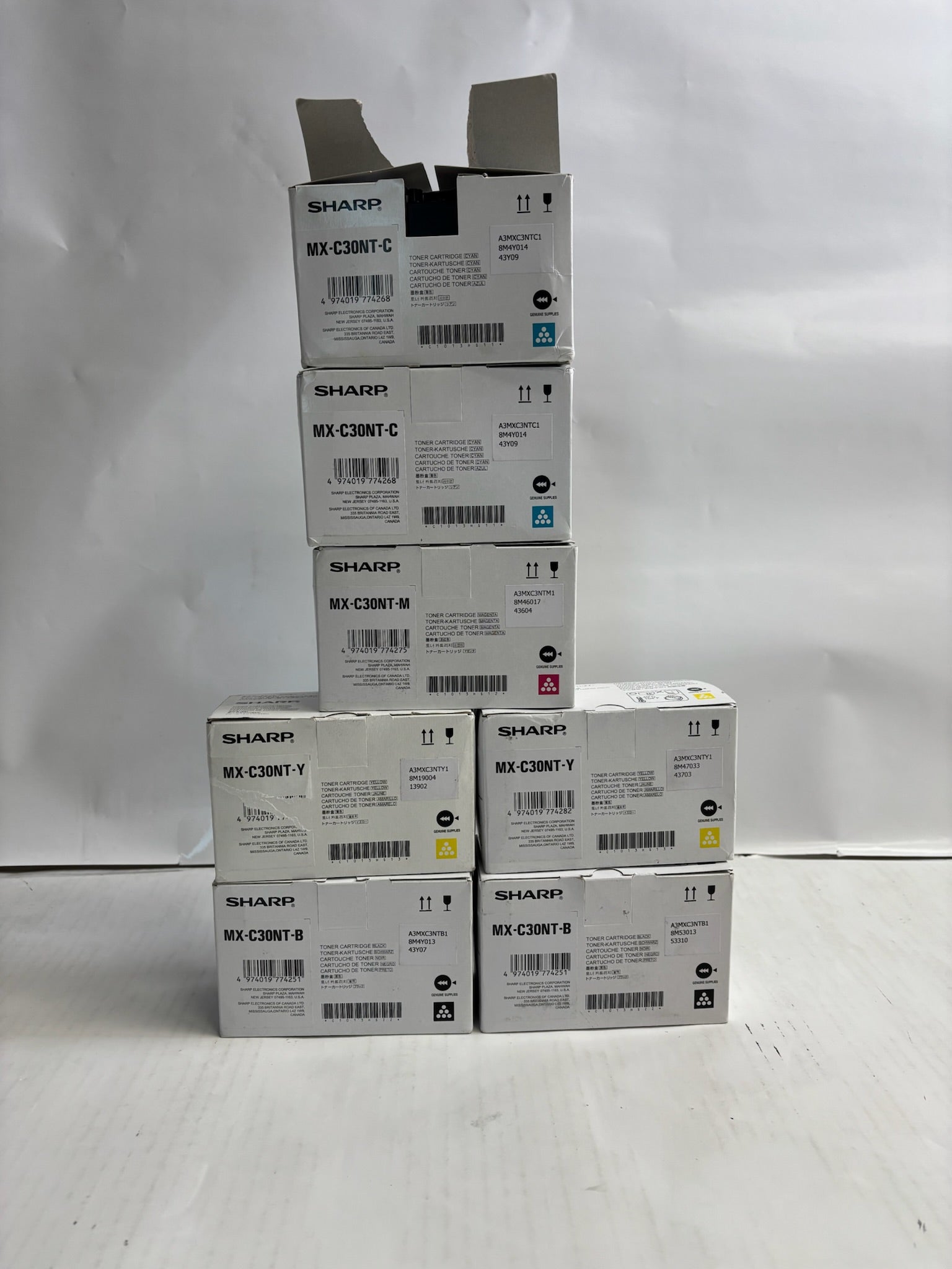 7 New Open Genuine Sharp MX-C250,C300P,C300W CCMYYKK Toners MX-C30NT