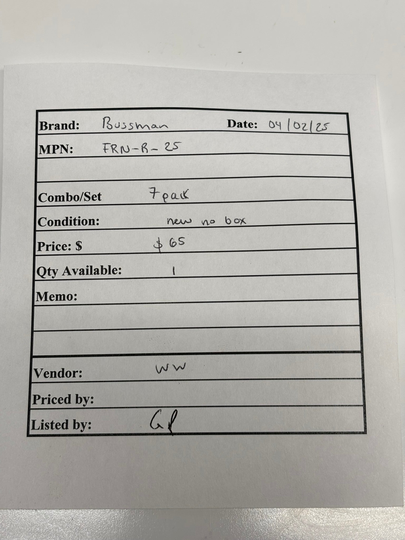 7-Pack Eaton FRN-R-25 Bussmann Series Class RK5 Fuse