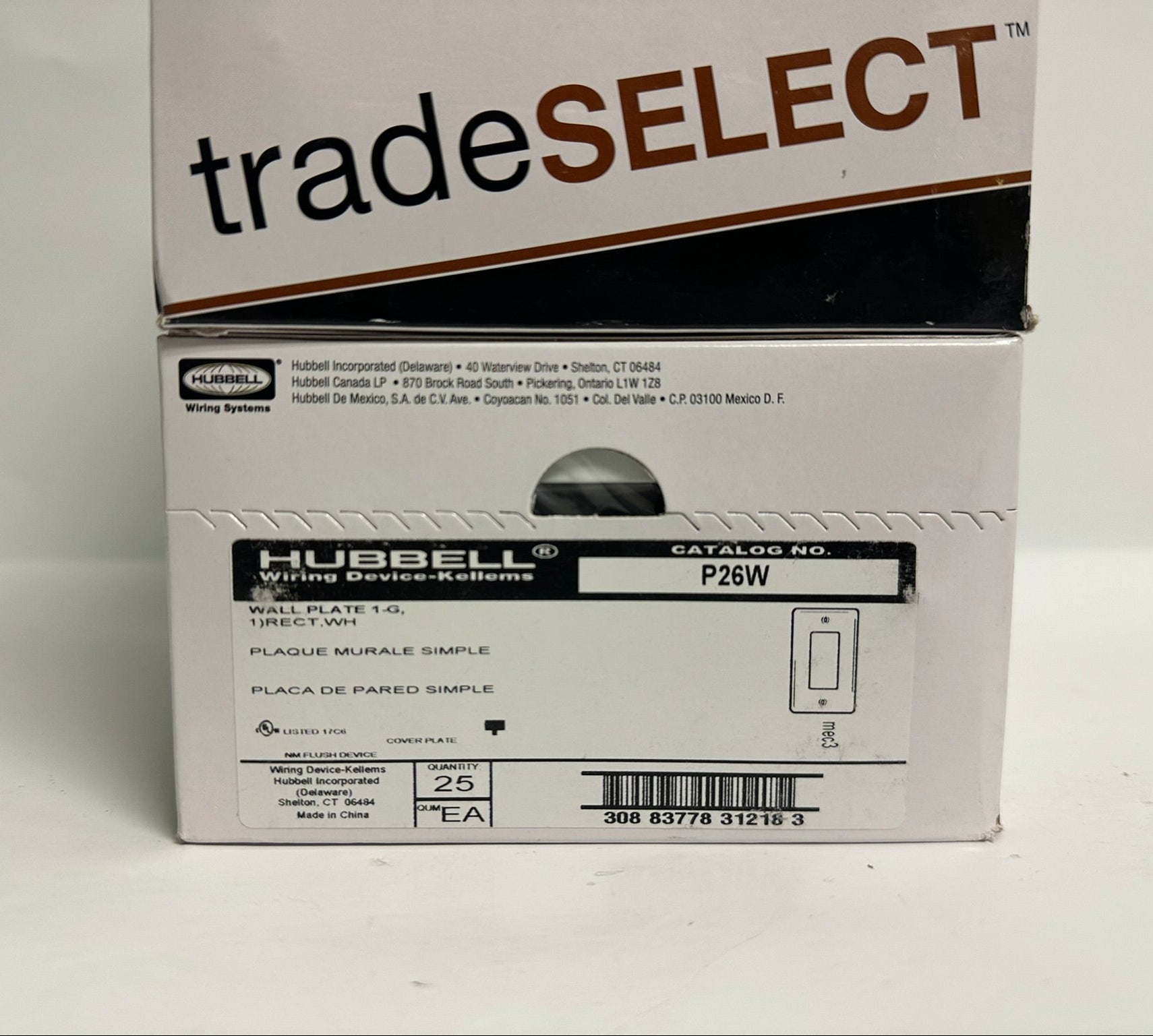 75 PK Hubbell P26W 1-Gang Decorator Wallplate, White, Brand New in Box