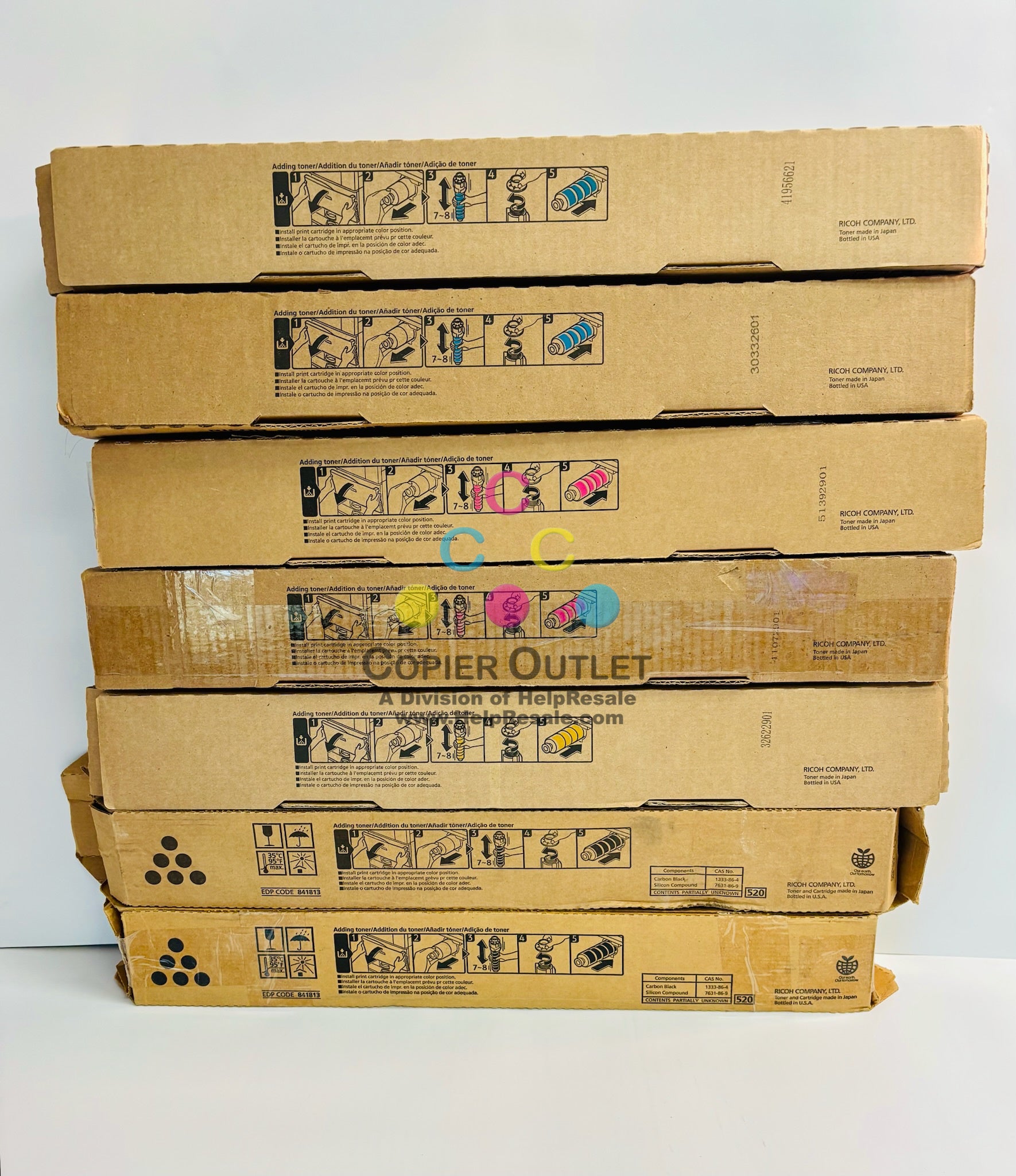 8 Cosmetic OEM Ricoh MPC3503,C3003,C3504 CCMMYYKK Toners 841813, 841814, 15, 16