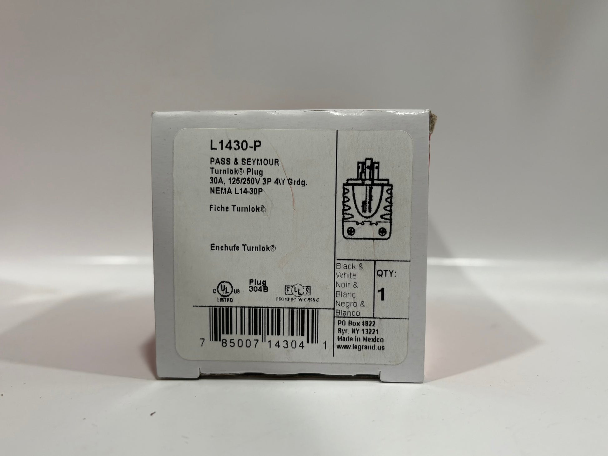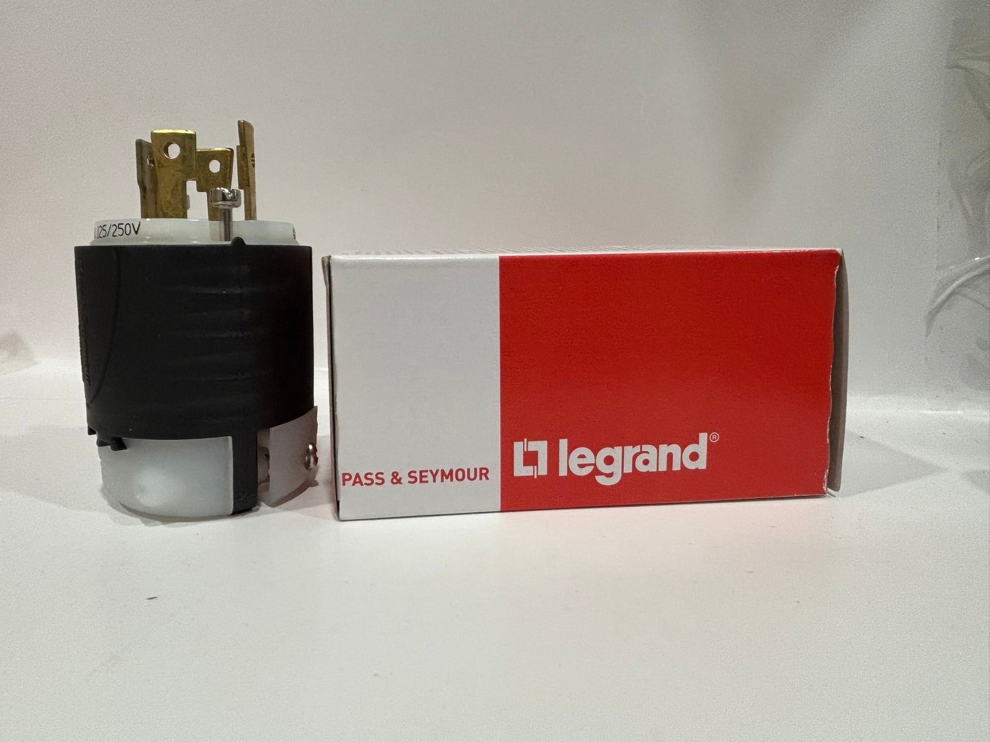 The Legrand L1430-P is a 30A, 125/250V locking plug with a NEMA L14-30P configuration, ideal for industrial and generator applications. It features a durable nylon housing, brass alloy blades, and a rubber cord grommet for protection against moisture and debris. The plug supports cord diameters from 0.385" to 1.15" and operates in temperatures from -40°C to 75°C. Its ergonomic design ensures a secure grip and reliable connection. UL and CSA certified, it's built for demanding environments.