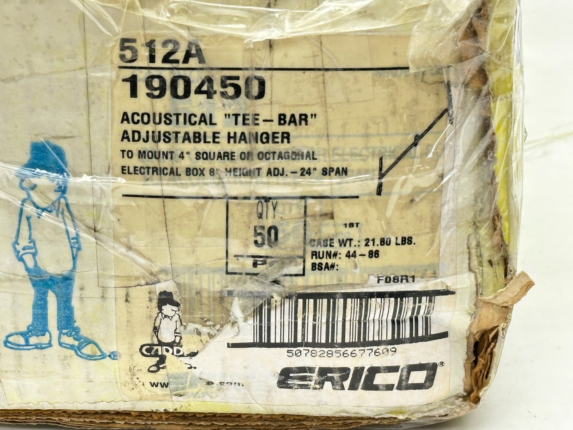 The 512A is a height‑adjustable box hanger that snaps onto 24″ T‑grid bars, with up to 8″ of vertical adjustability for deeper boxes or fixtures. It includes a box mounting clip and ¼‑20 screw, and supports from both the ceiling grid and main structure (with drop wire). Rated for a 20 lb static load under normal use.