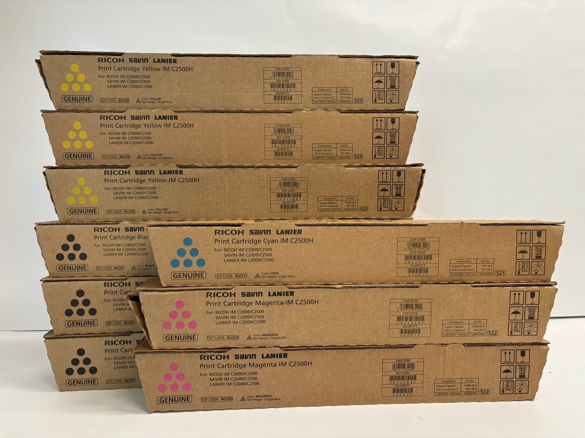9 New OEM Ricoh IM C2500H,IM C2000 CMYK Toners 842307,842308,842309,842310