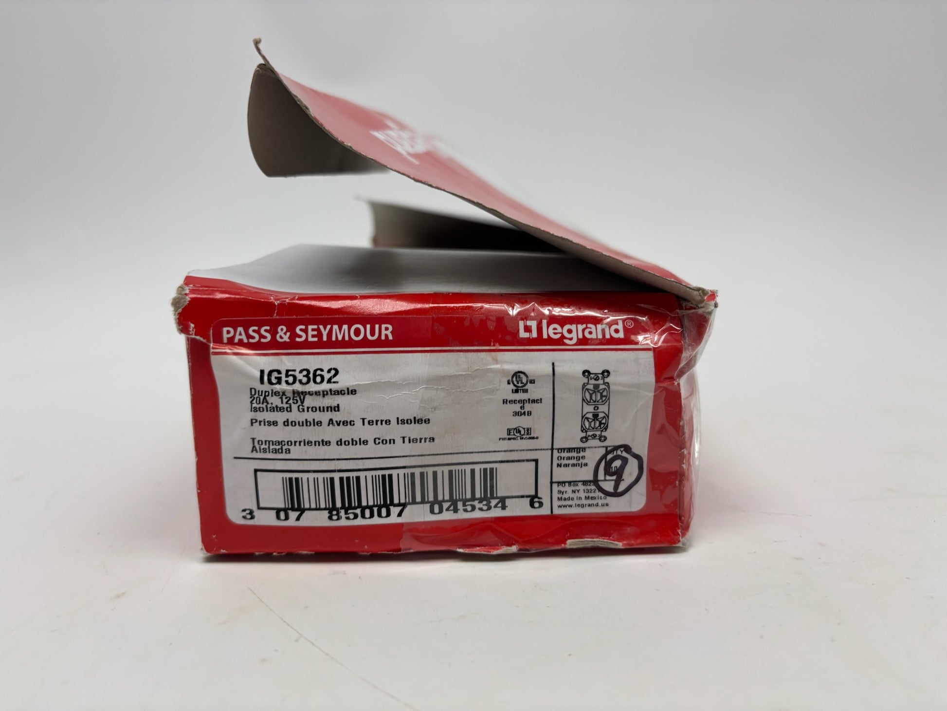 9 PC New Open Legrand IG5362 Isolated Ground Duplex Receptacle, 20A, 125V, Orange