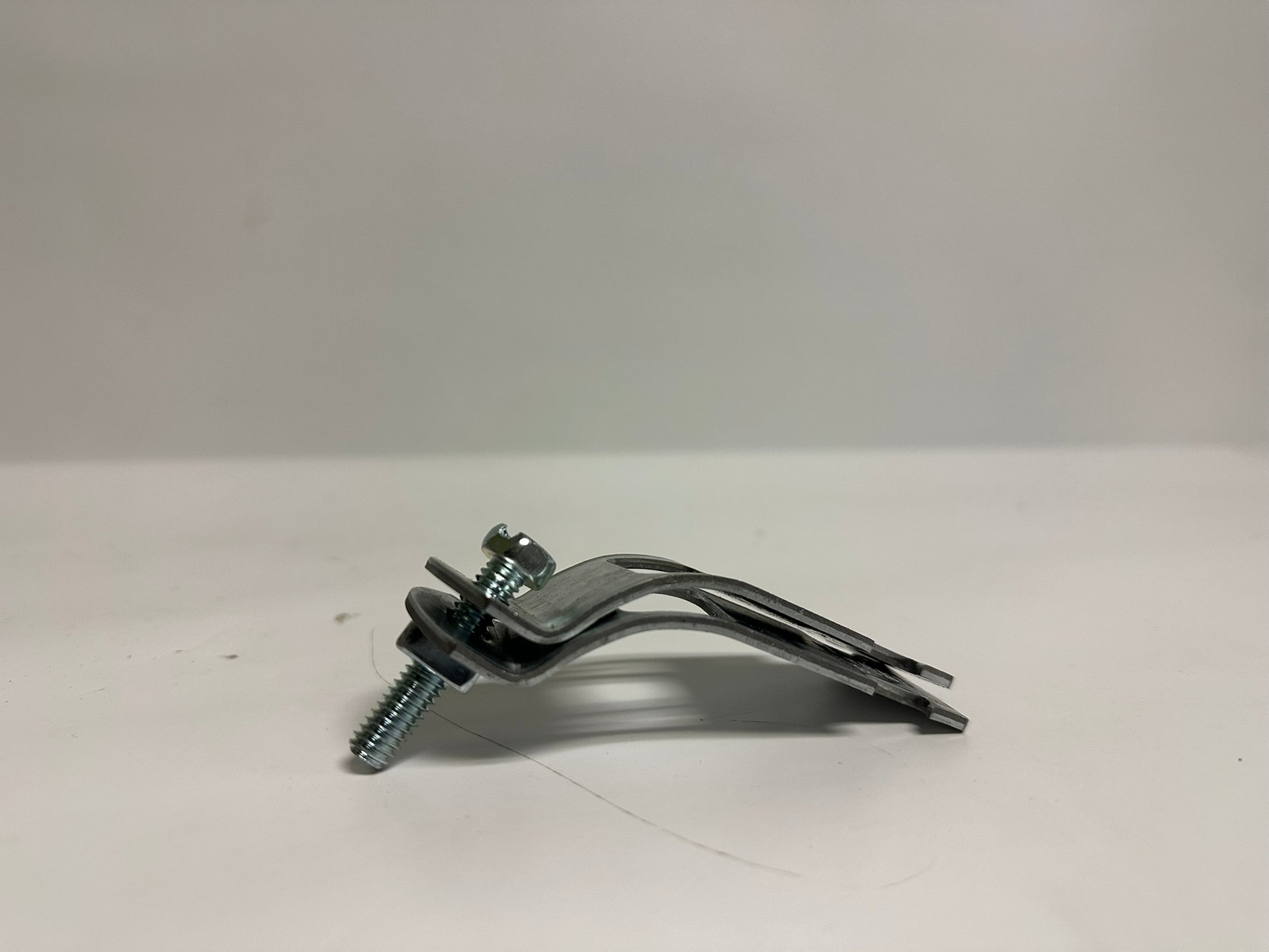 The Eaton B2213PAZN is a 2-inch pre-assembled pipe clamp designed for securing EMT, IMC, and rigid conduit to strut channel systems. Made from 12-gauge low carbon steel with a zinc-plated finish, it offers strong corrosion resistance for long-term durability. The clamp supports conduit sizes with outer diameters between 2.192" and 2.400", making it versatile for various applications. It includes a combination recessed hex head screw and square nut for easy installation. With a vertical load capacity of 600 lbs and a transverse load capacity of 75 lbs, this clamp delivers dependable support in commercial, industrial, and utility settings.