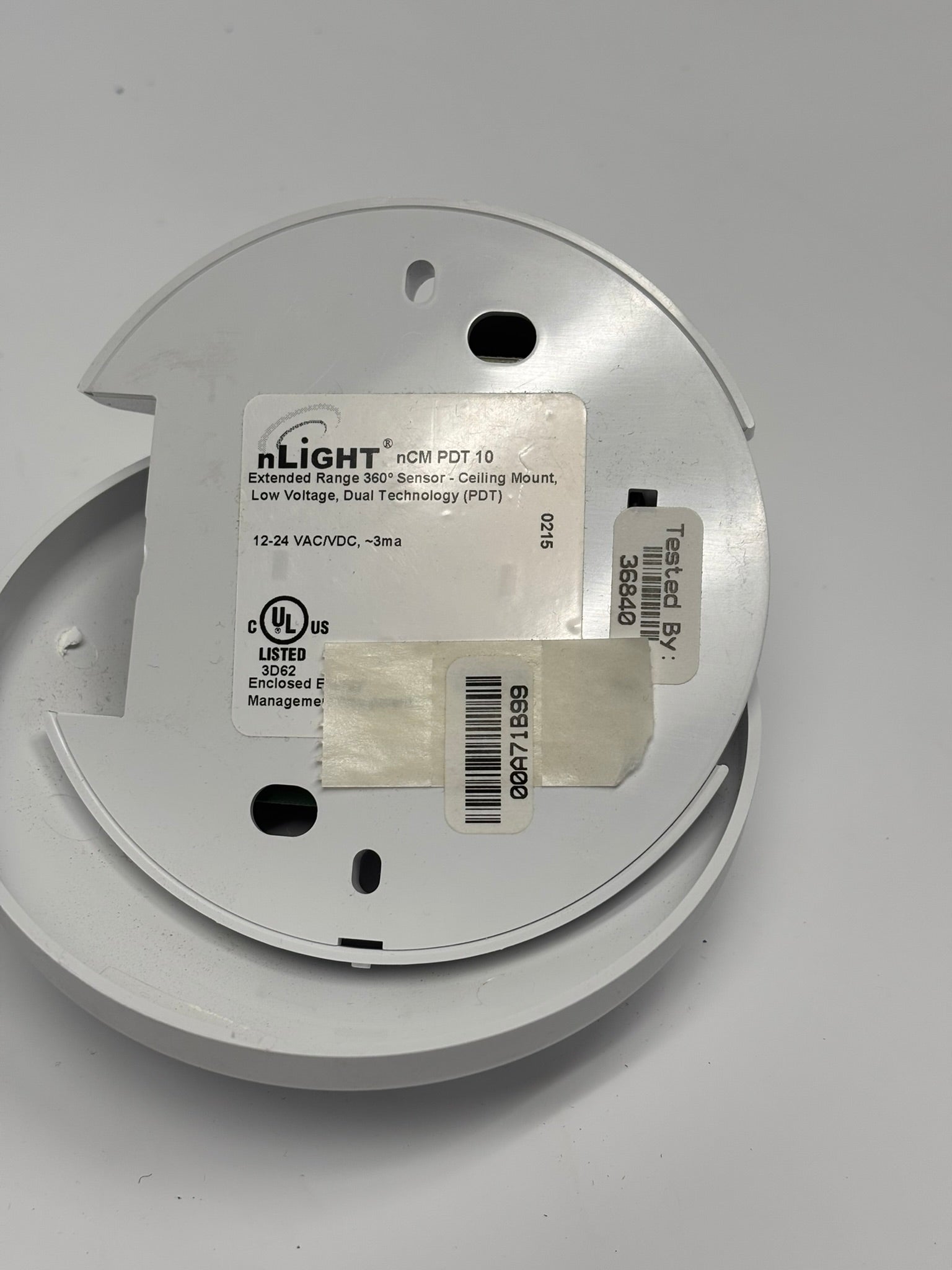 The Sensor Switch NCM PDT 10 ceiling mount occupancy sensor provides line of sight Passive Infrared (PIR) detection of walking type motions up to 28 ft (8.53 m) in all directions. Additionally, the nCM PDT 10 provides overlapping Microphonics technology to detect smaller motions and occupant movements that occur behind obstructions. This is important for classrooms filled with obstructions like shelving, hanging projects, or lab benches. Besides classrooms, the nCM PDT 10 is perfect for T-shaped intersections in corridors or other areas where wall mounting a sensor is not practical. Spaces with low ceiling heights are also best covered by the nCM PDT 10. For example, when mounted at the 7 ft (2.13 m) ceiling height of many distribution center pick aisles, the nCM PDT 10 provides a 32 ft (9.75 m) diameter pattern of coverage. Additionally, the nCM PDT 10 may be used in combination with other nLight sensors to customize coverage for very large or irregularly shaped spaces.