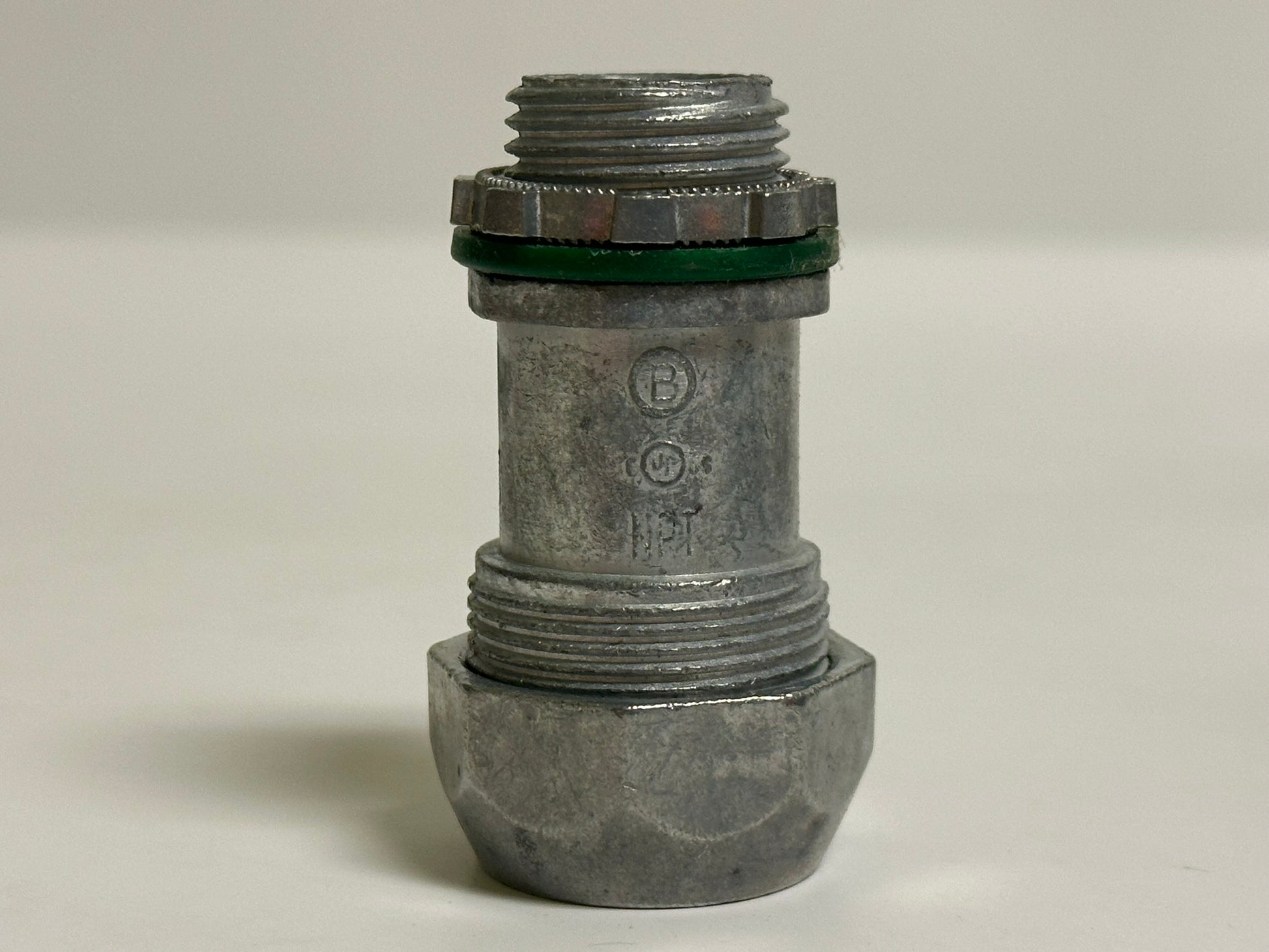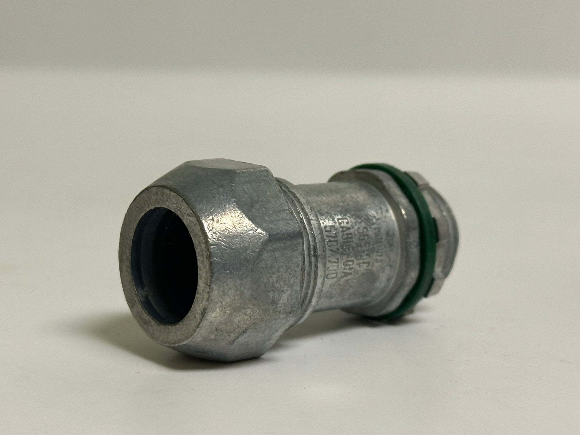The AFC-595-U is a 1/2" non-insulated MC cable connector designed for use with PVC-jacketed metal clad (MC) cables in demanding environments such as parking decks and lots. Constructed from corrosion-resistant zinc die-cast material, this connector ensures a durable, secure connection to enclosures or junction boxes. It accommodates cables with conductors ranging from (2) 12 AWG to (3) 10 AWG and features NPT external threads for easy installation. UL Listed and rated for wet locations when properly installed, the AFC-595-U provides code-compliant performance in both commercial and industrial applications. Ideal for direct burial or concrete encasement installations.