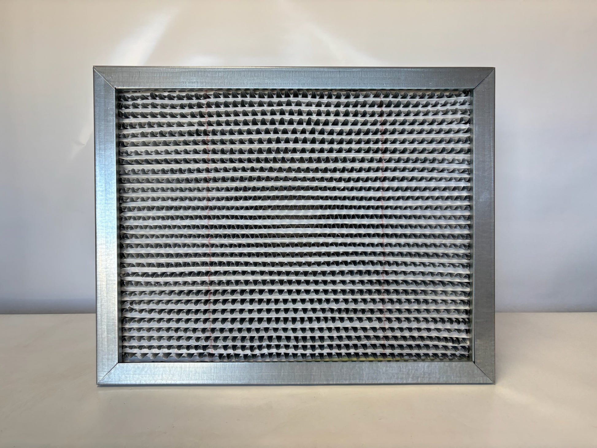 The Airguard VMB-808 (L2520A00-0EA000300) is a high-efficiency rigid cell air filter designed for commercial and industrial HVAC systems. Measuring 20" x 20" x 12", it features a durable metal header and micro-glass media with corrugated aluminum separators for strength and consistent airflow. Rated at MERV 13, it effectively captures airborne particles such as dust, pollen, and mold spores, improving indoor air quality.