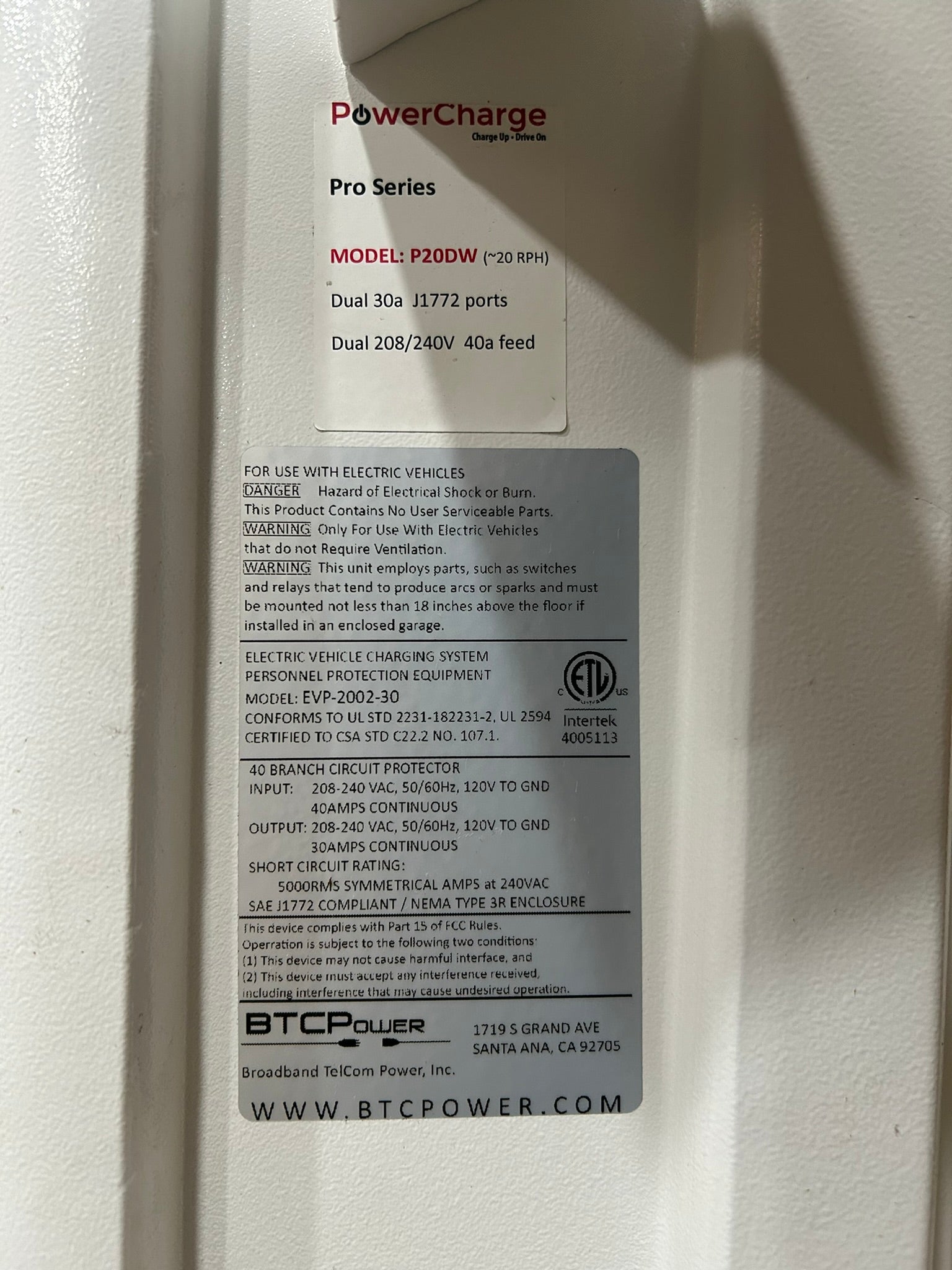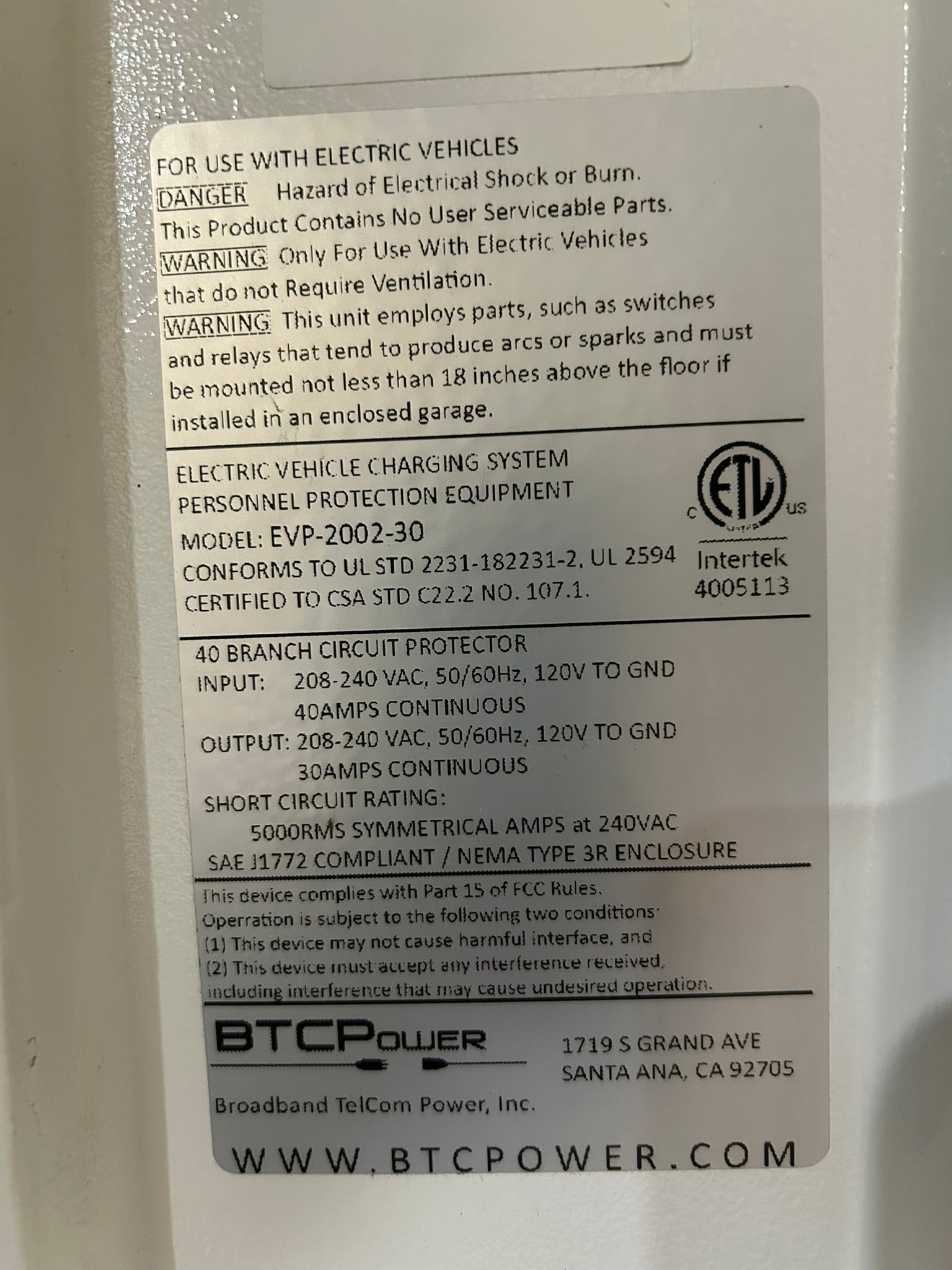 BTCPower (EVP-2002-30) Electric Vehicle Charging System, 30A, AC Fast Charging