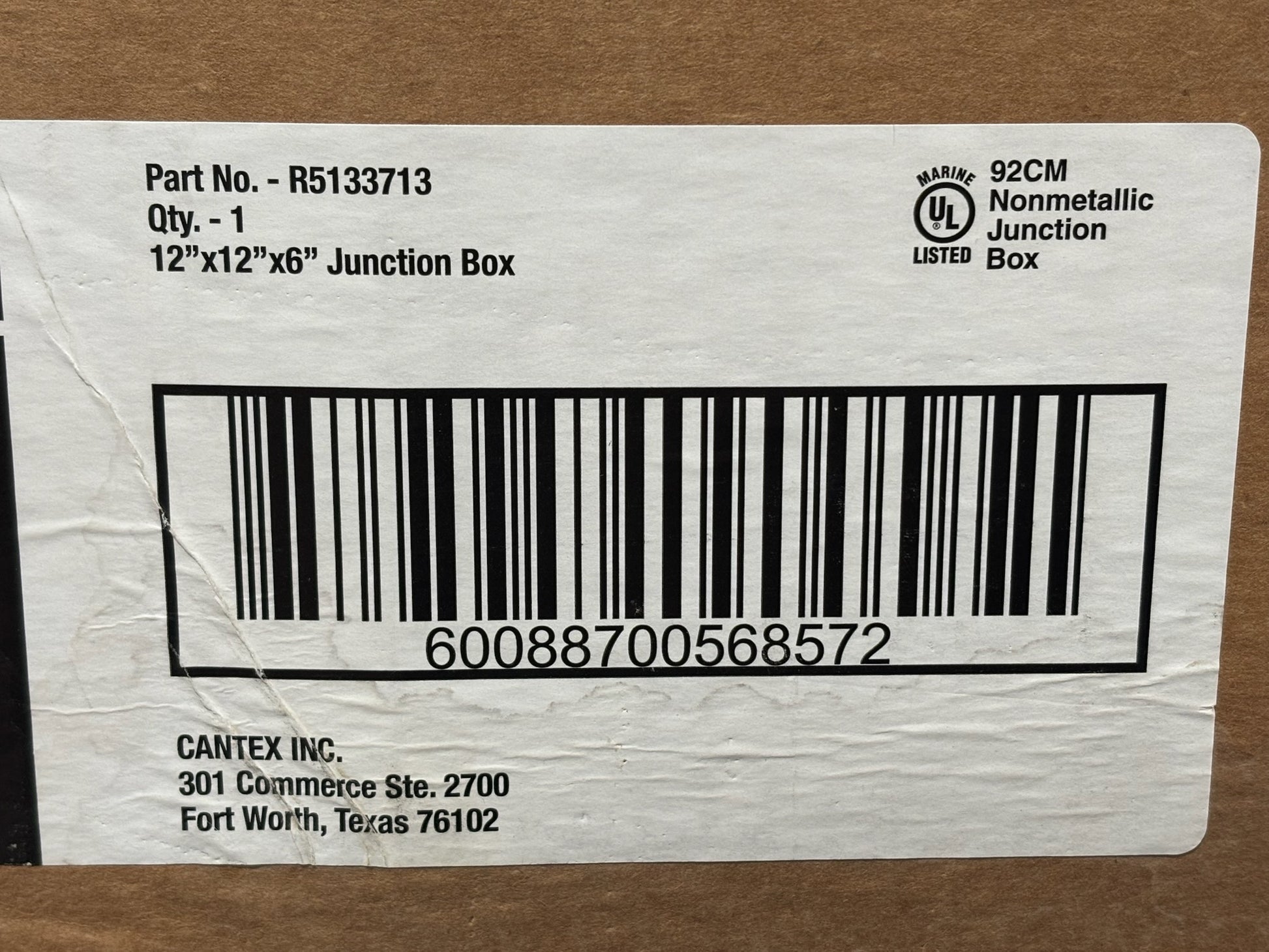 The CANTEX 5133713 is a durable 12"x12"x6" PVC junction box designed for tough environments. It features a gasketed cover, zinc-plated steel screws, and is UL listed with NEMA 1, 3, 4X, 6P ratings. This box offers excellent protection against water, dust, and corrosion. Ideal for outdoor or industrial electrical installations.
