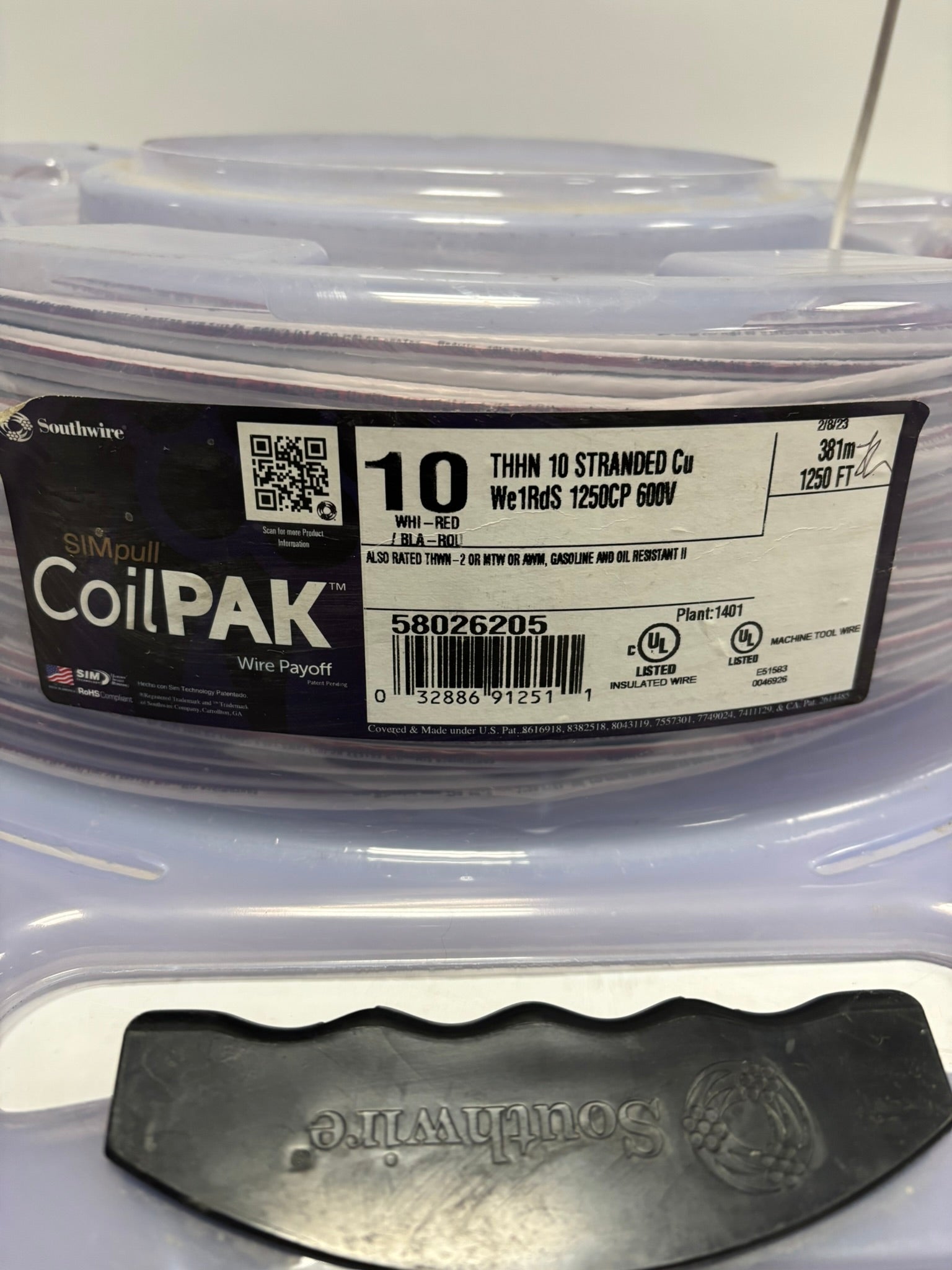 58026205 SouthWire CoilPAK 1141Ft 348m Stranded 10 White Red THHN 600V Same Day Shipping