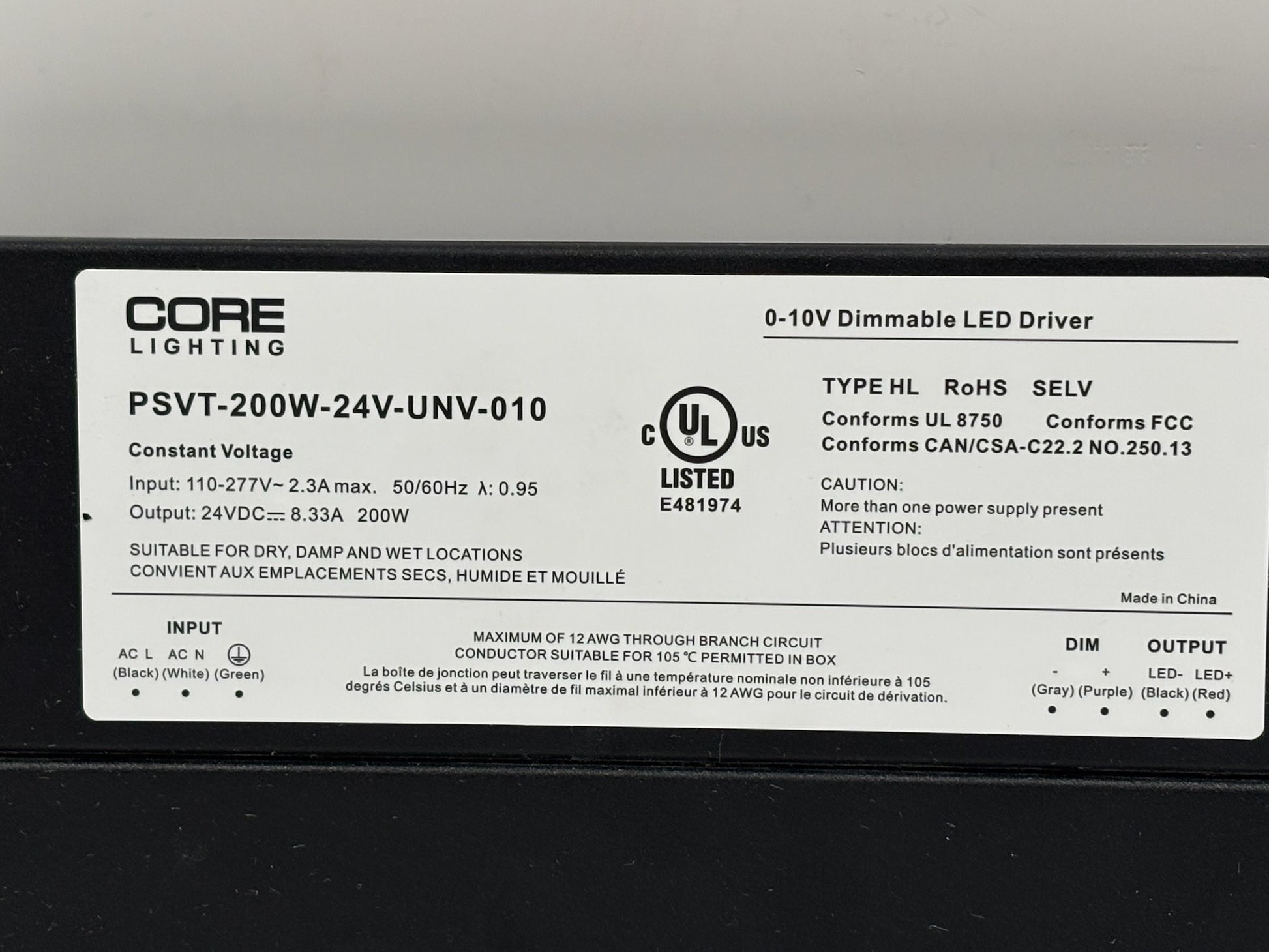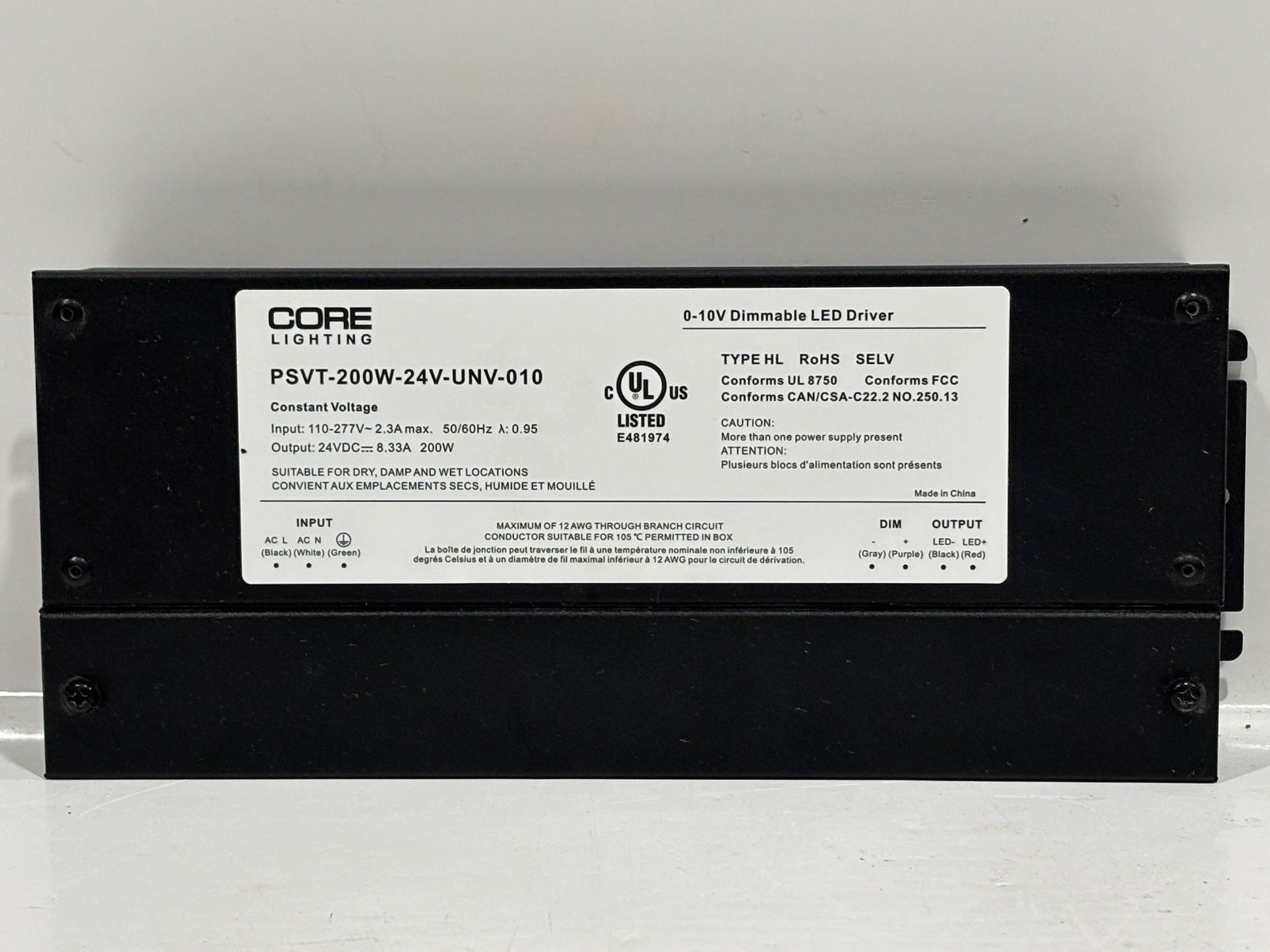 Core Lighting PSVT 200W 24V LED Driver with 0–10V Dimming, IP66 Rated