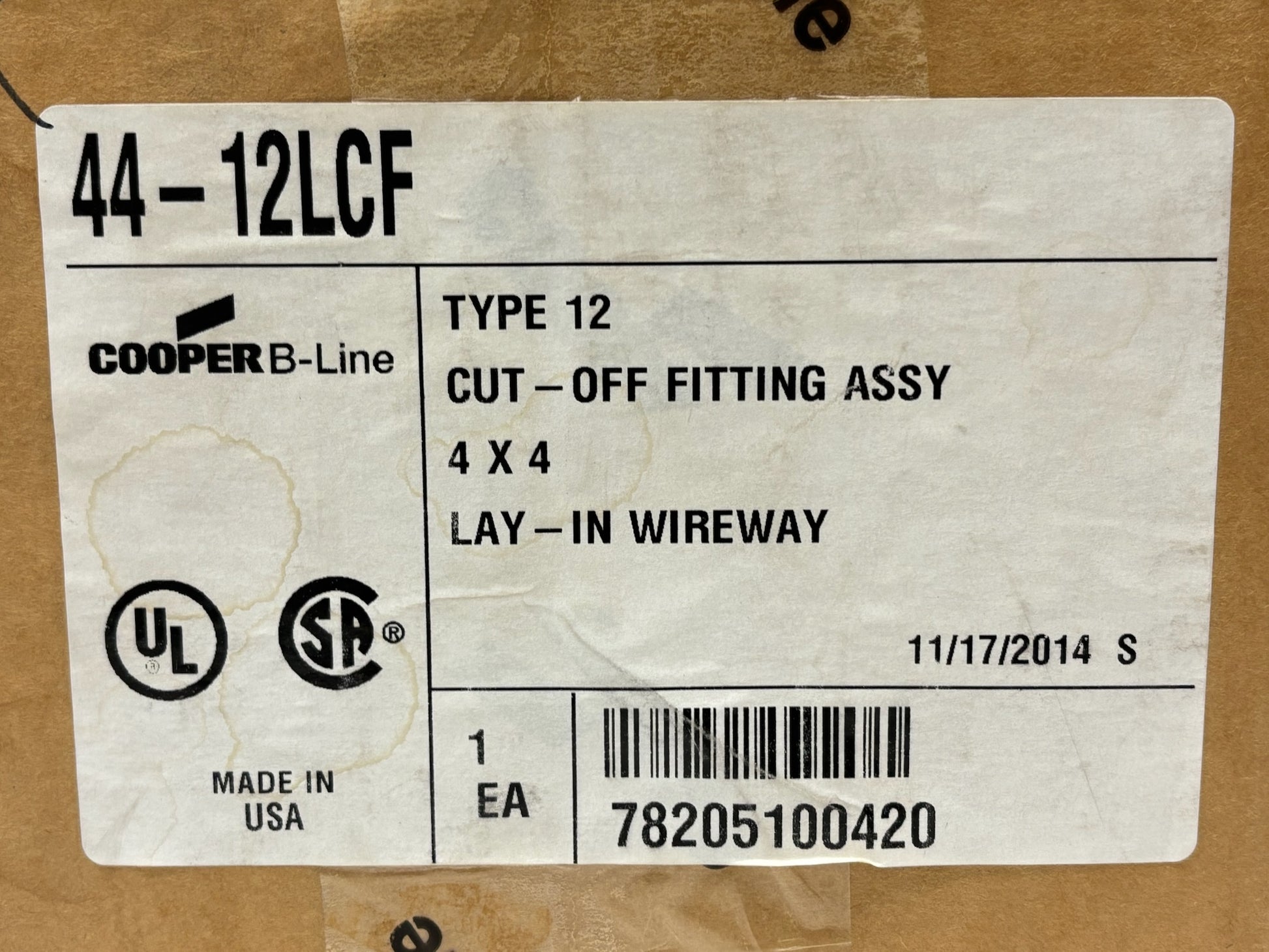 The Eaton B-Line 44-12LCF is a top-opening wireway cross designed for routing control and power cables in industrial and commercial electrical systems. Made from 14-gauge steel with a 10-gauge steel flange, it features a polyester powder-coated finish in ANSI 61 gray for durability. The 4" x 4" x 9.5" dimensions provide ample space for cable management, while the top-opening design allows for easy access during installation and maintenance. This wireway cross is UL listed and CSA certified, ensuring compliance with industry standards.