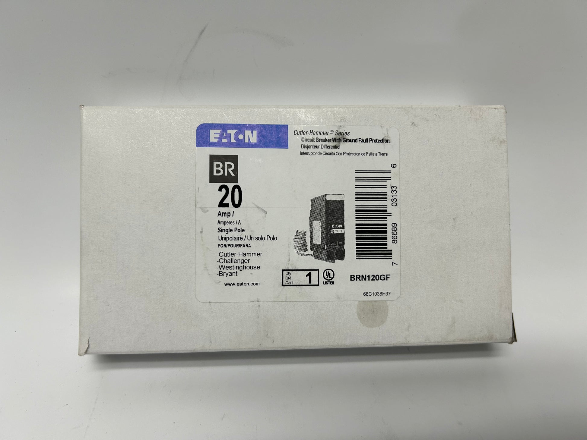 EATON BRN120GF Plug-in ground fault circuit breaker 20 A 10 kAIC Single-pole 120/240 V BRN