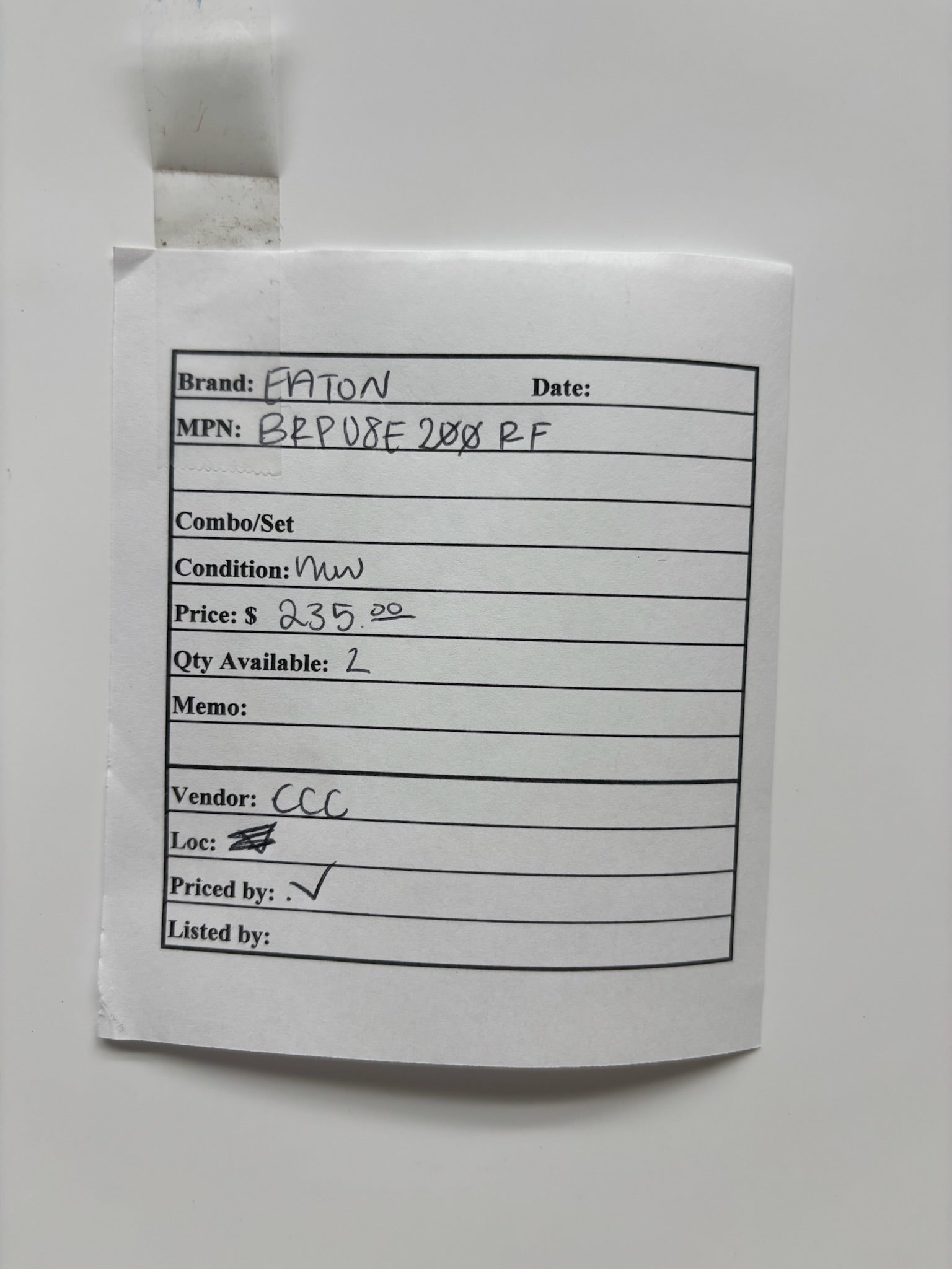 Eaton BRP08E200RF Cutler Hammer series Plug-On Natural Design 200 AMP