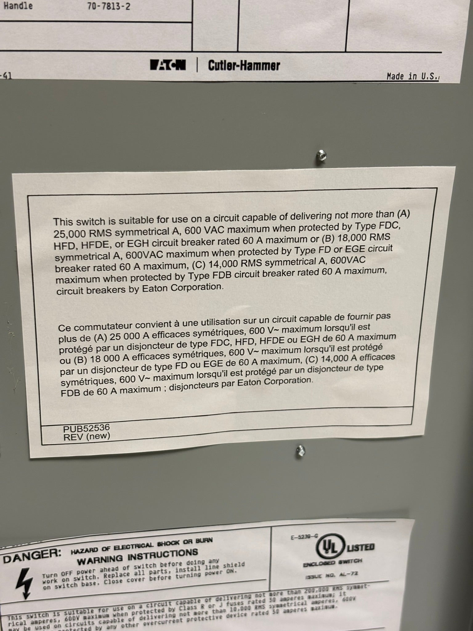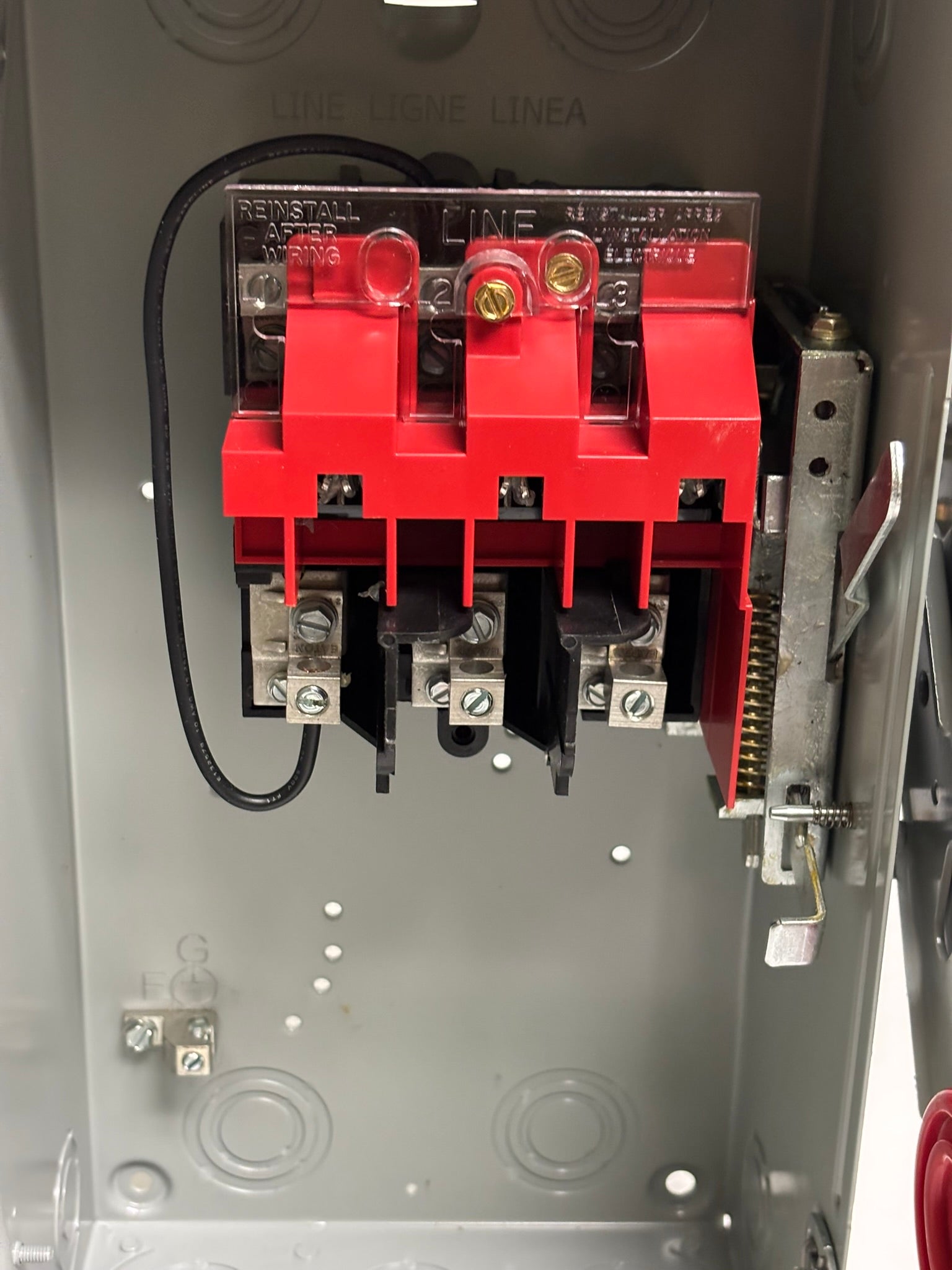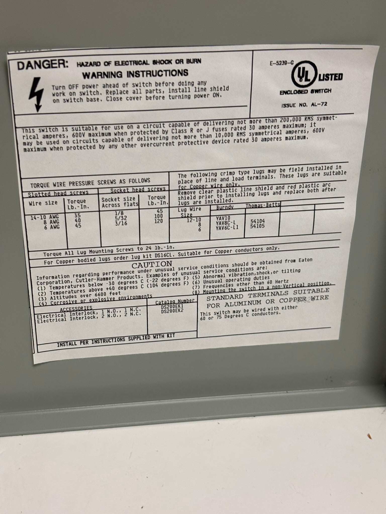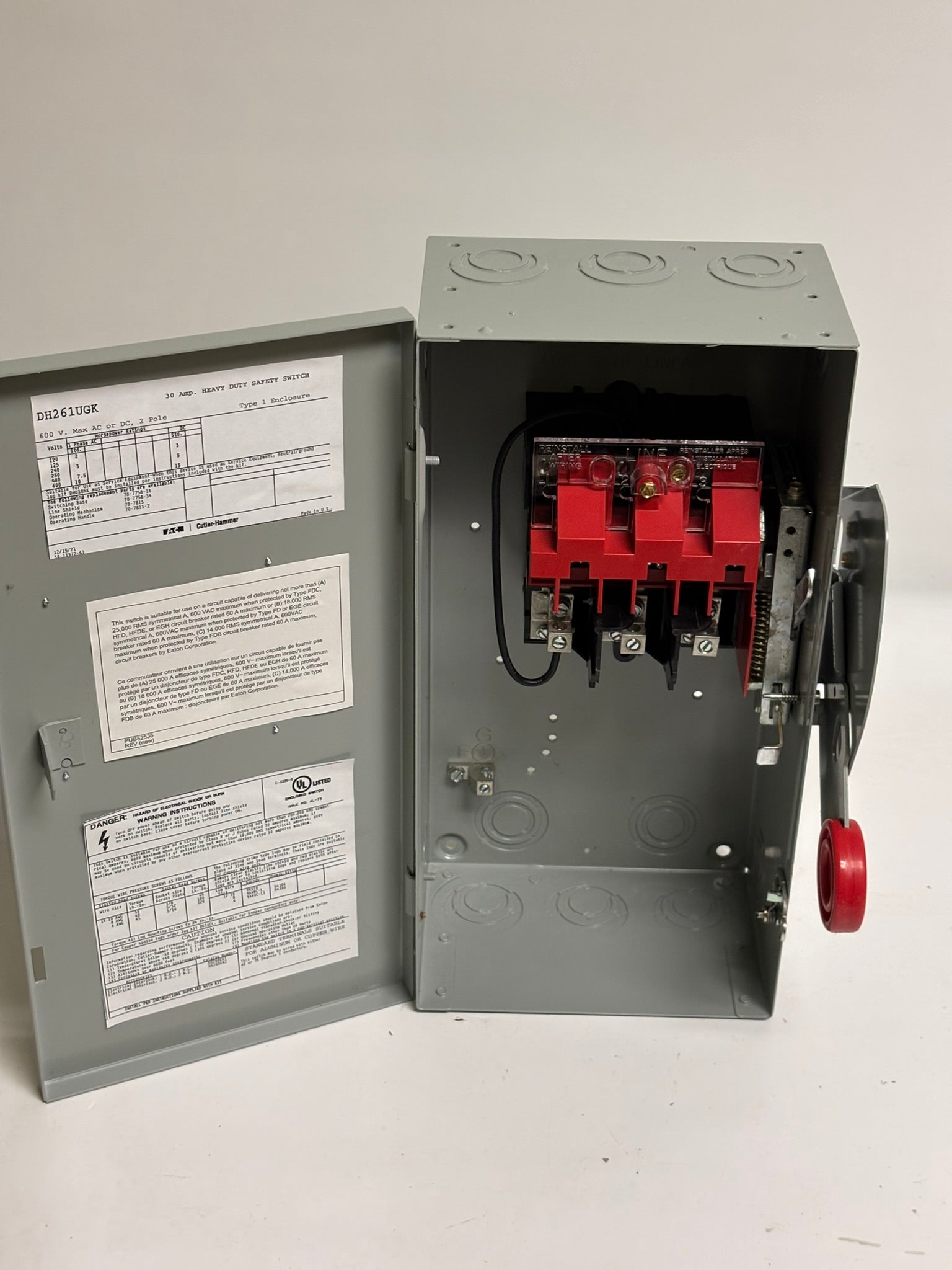 The Eaton heavy-duty single-throw non-fused safety switch is a 30 Amp, two-pole, two-wire unit designed for reliable on/off control in industrial applications. Housed in a durable painted steel NEMA 1 enclosure, this non-fusible switch is ideal for 240V, 480V, and 600V AC systems, with a maximum horsepower rating of 7.5 HP at 480V and 10 HP at 600V. Capable of handling up to 15 HP at 600 Vdc, it ensures safe and efficient disconnecting of electrical circuits in both AC and DC applications.