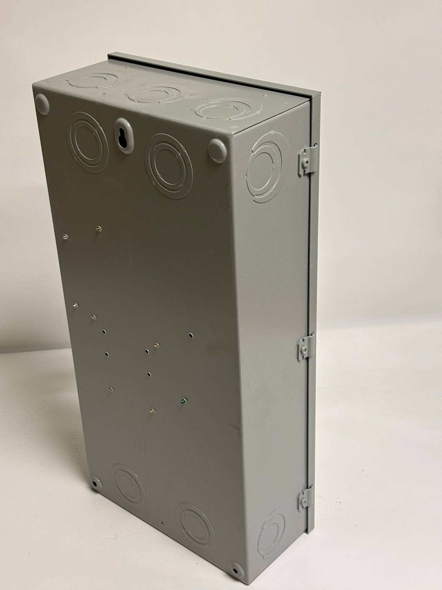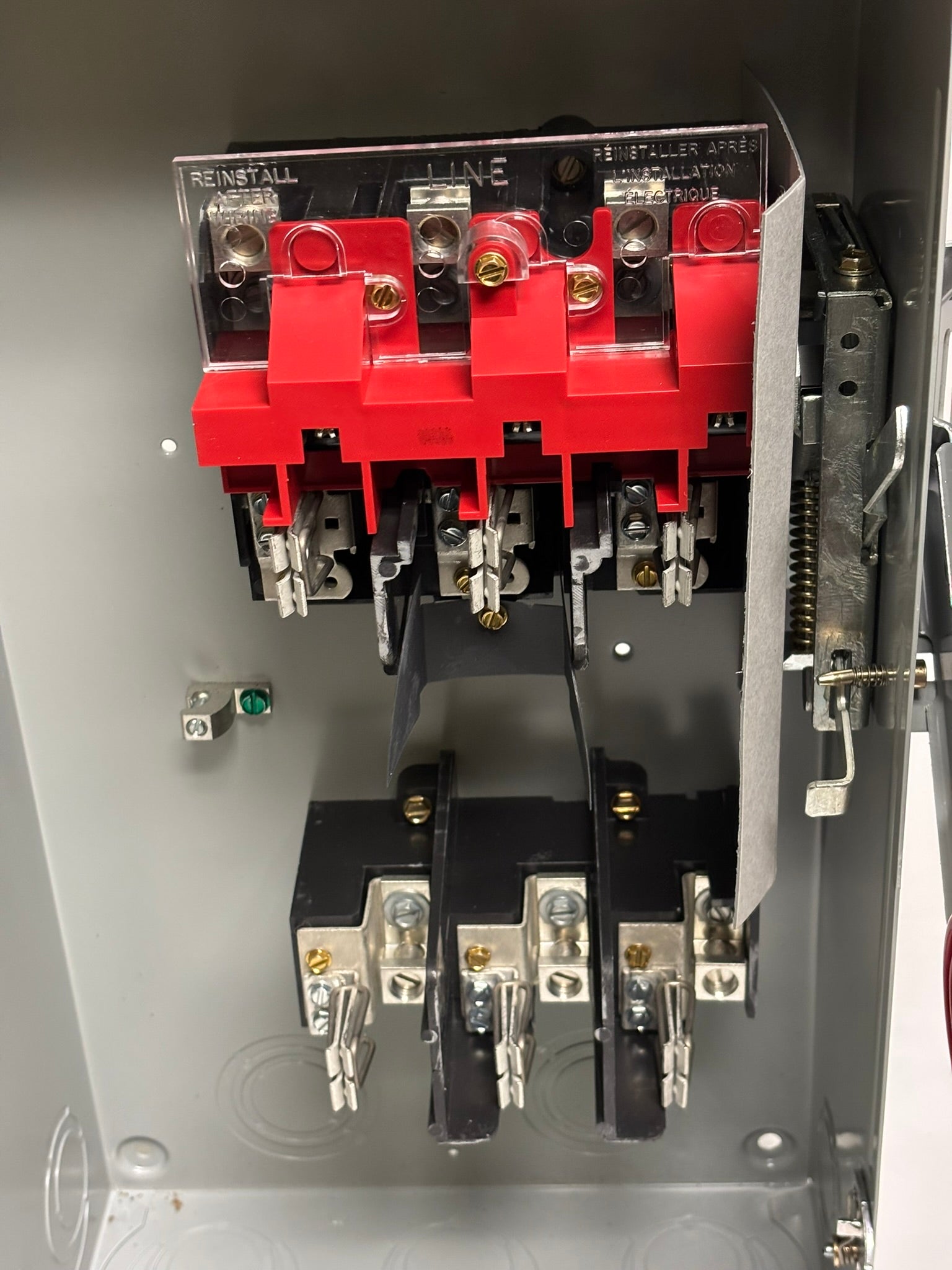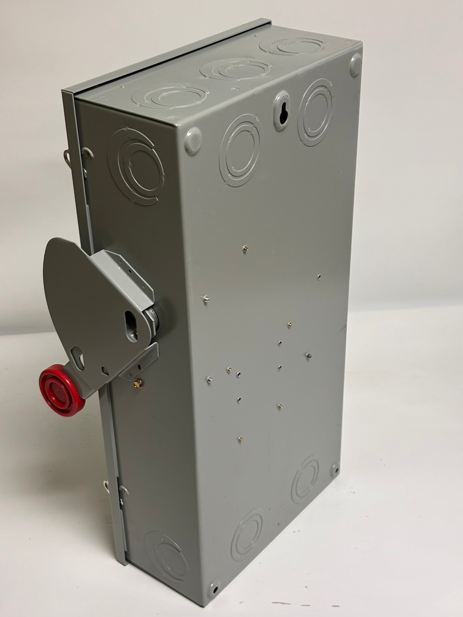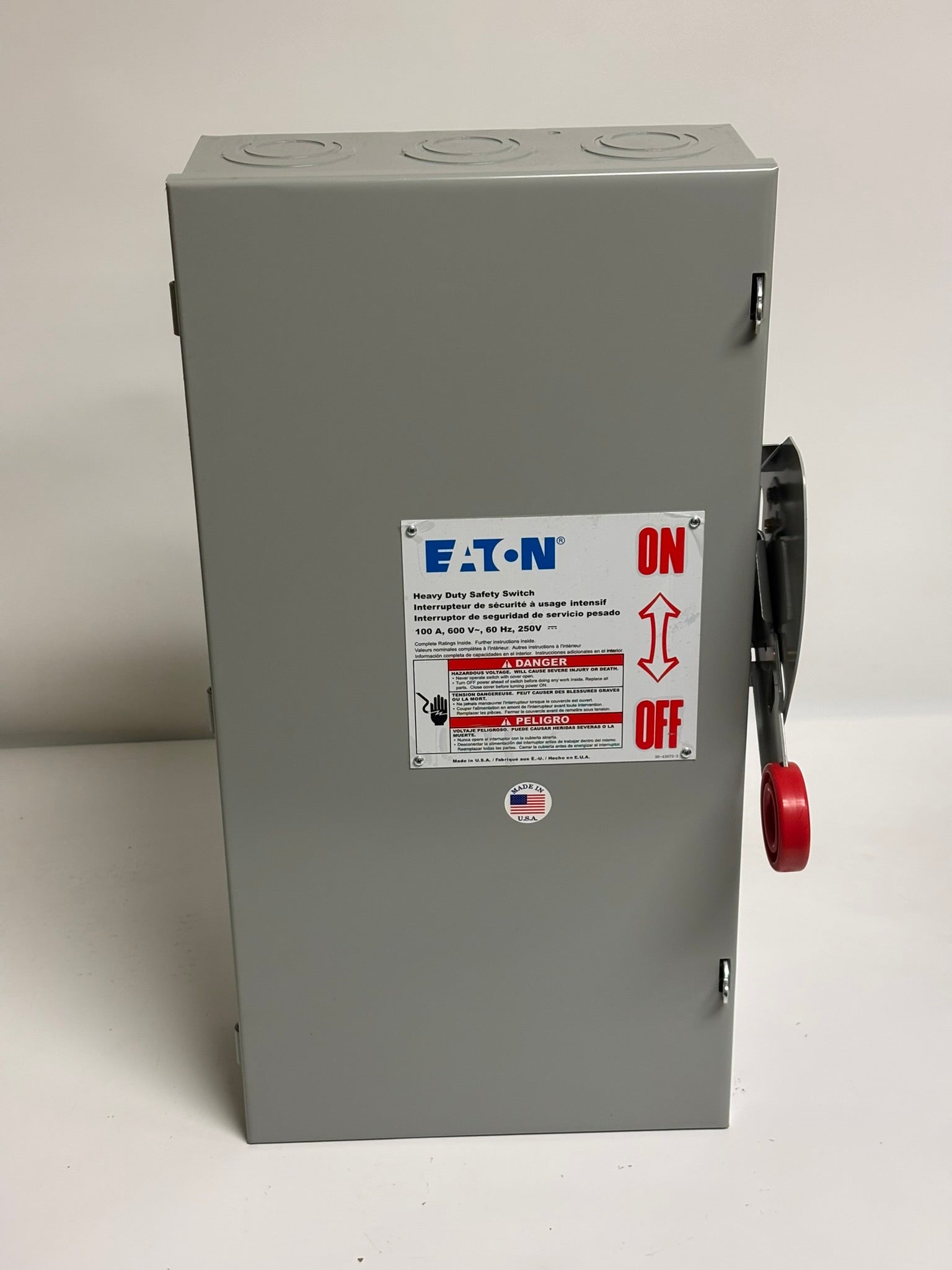 The Eaton custom single-throw fused safety switch is a 100 Amp, three-pole, three-wire unit rated for up to 600 Volts, designed for dependable load break and circuit protection. Housed in a painted steel NEMA 1 enclosure, it features Class H fusing without a neutral and supports a maximum horsepower of 30, 40/60, and 75 HP depending on phase and voltage. Compatible with #14 to #1/0 Cu/Al conductors, this switch is ideal for indoor industrial and commercial applications requiring reliable safety and performance.