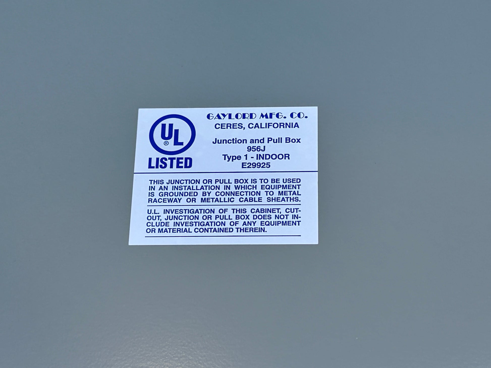 The Gaylord MFG 956J (IE29925) Type 1 Screw Cover Junction and Pull Box is designed to securely house and protect electrical connections in indoor applications. Its Type 1 rating provides reliable protection against incidental contact and limited dirt exposure in controlled environments. Ideal for commercial and industrial use, this junction and pull box offers a dependable solution for organizing and safeguarding electrical terminations.