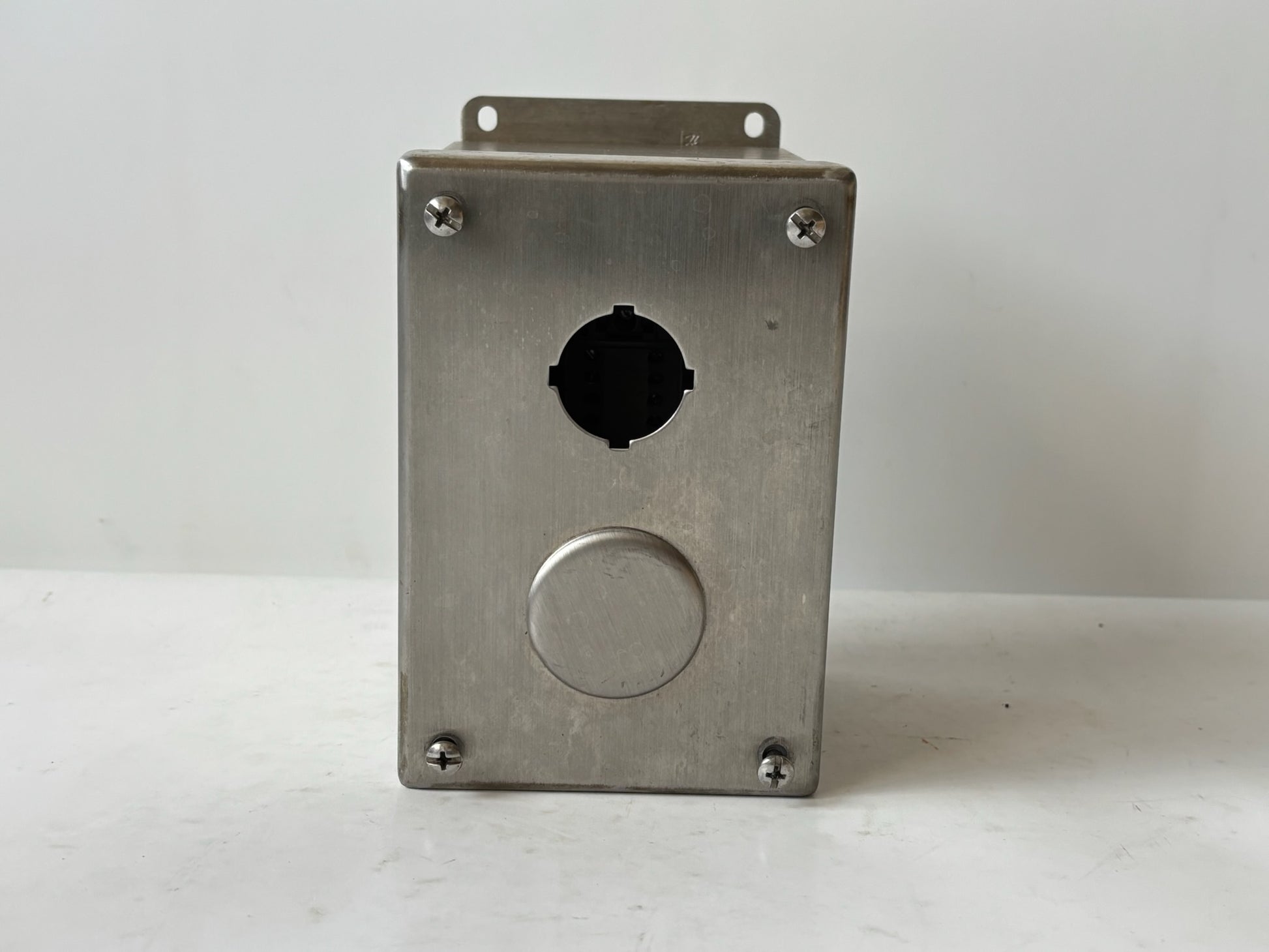 The Hoffman E2PBXSS is a 304 stainless steel pushbutton enclosure designed to house two 30.5 mm oil-tight pushbuttons, switches, or pilot lights. Its extra-deep design and NEMA 4X/IP66 rating provide robust protection against dust, dirt, oil, and water. The hinged cover with captivated screws allows safe and convenient wiring access. This enclosure is ideal for industrial control applications requiring durable, corrosion-resistant housing.
