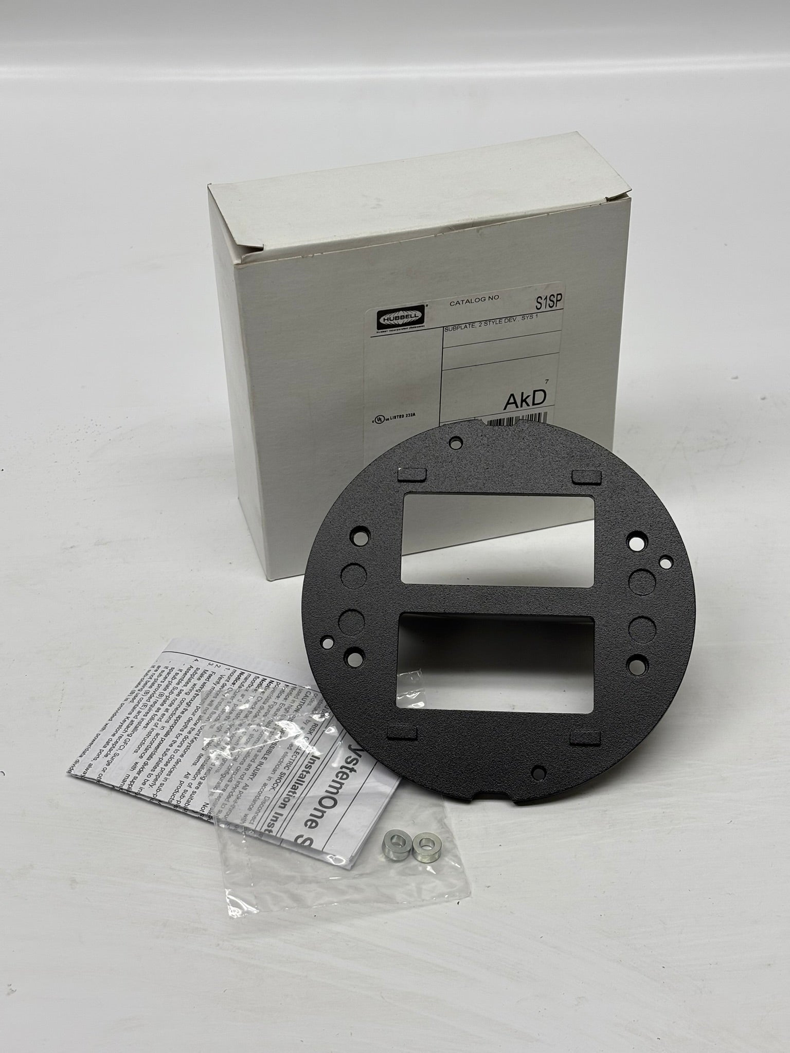 The Hubbell S1SP 20A Single-Pole Surge Protector features a durable cast aluminum construction and a sleek black powder coat finish. Part of the SystemOne in-floor delivery system, it includes a sub-plate with dual StyleLine decorator openings, offering large capacity and versatility for multi-service applications. This open system subplate design ensures maximum data flexibility, ideal for both residential and commercial installations. Protect your systems with reliable surge protection while maintaining a clean, modern aesthetic.