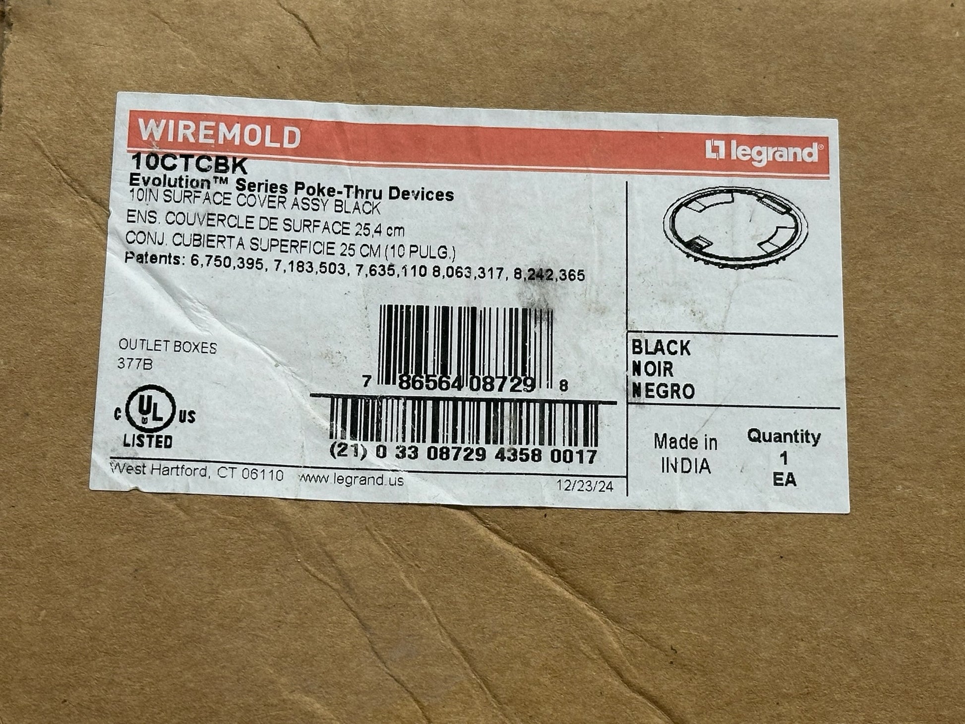 Legrand 10CTCBK 10" Surface Cover Assembly – Black, Poke‑Thru Cover