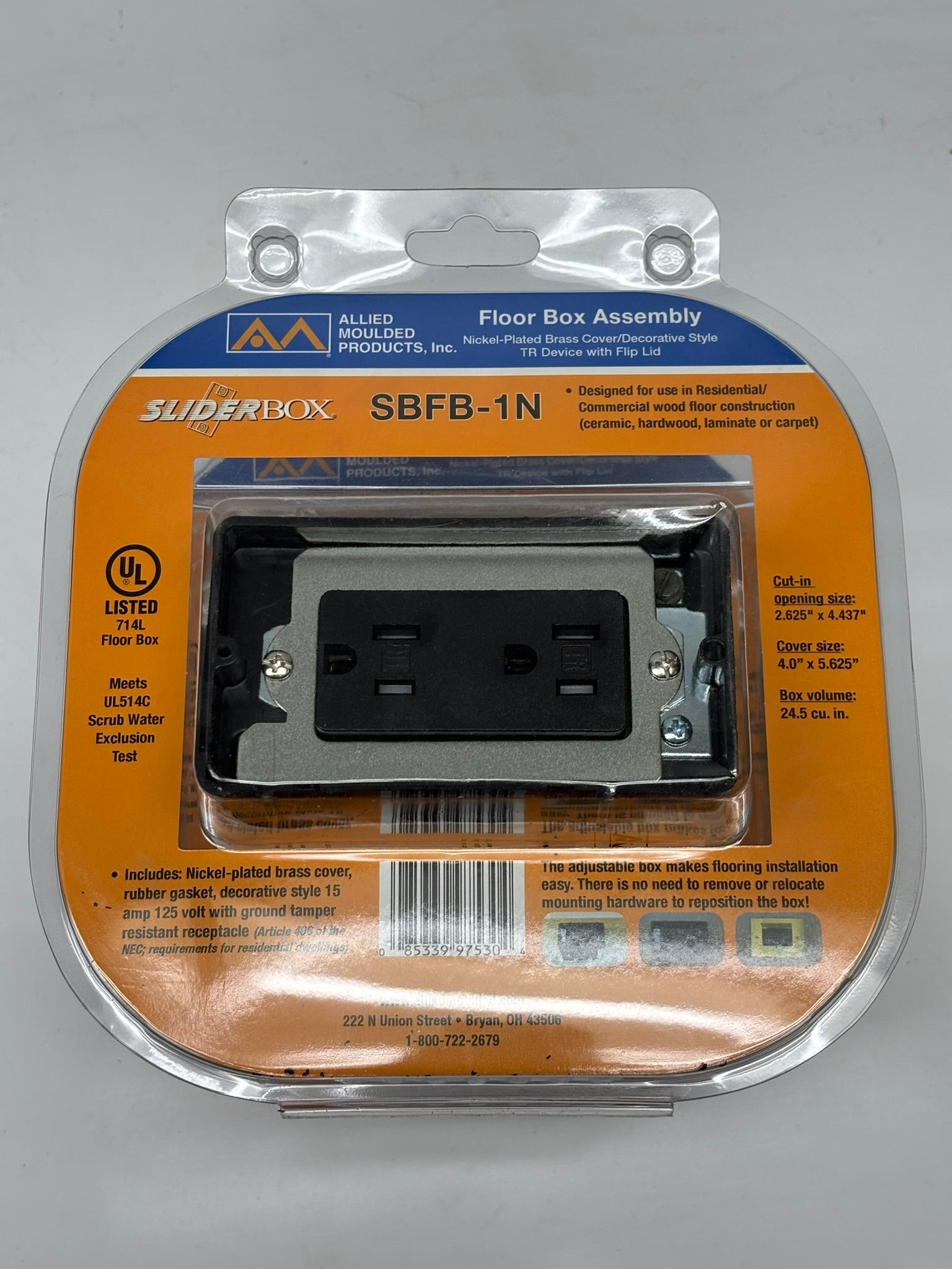 The Sliderbox SBFB-1N is a fire-rated junction box designed specifically for wood floor construction. It is compatible with multiple floor substrate materials and provides maximum adjustability for substrate thicknesses up to 2 inches. Featuring a tamper-resistant receptacle and meeting the scrub-water exclusion test, this junction box ensures durability and safety. Its simple exterior design allows for easy cut-in installation, making it ideal for both residential and commercial applications. Reliable and versatile, the SBFB-1N offers the protection you need for your electrical connections.