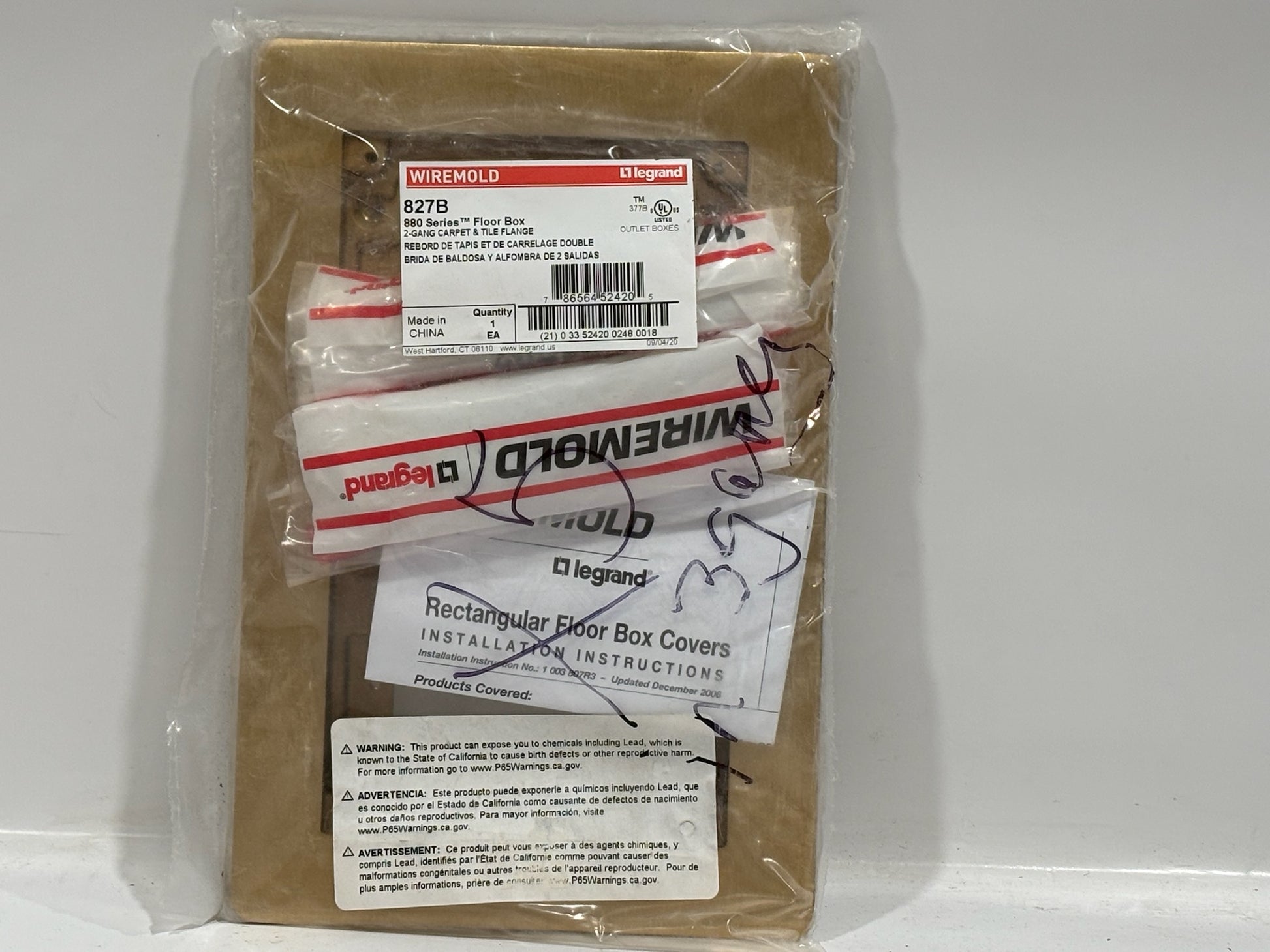 The Legrand 827B is a 2-gang brass floor box flange designed for use in carpet and tile installations. It fits Omnibox and Modulink systems, providing a secure and professional finish. The flange supports a variety of data, AV, and power configurations. Made from durable brass, it is ideal for commercial environments. Its sleek design ensures a clean, flush appearance on finished floors.