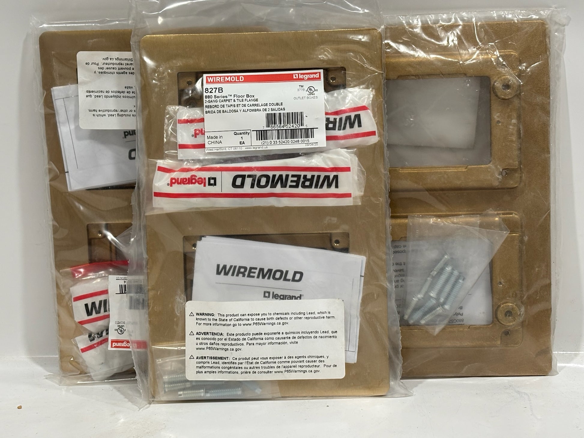 LOT OF 3 Legrand 827B Brass 2-Gang Floor Box Flange for Carpet and Tile Floors