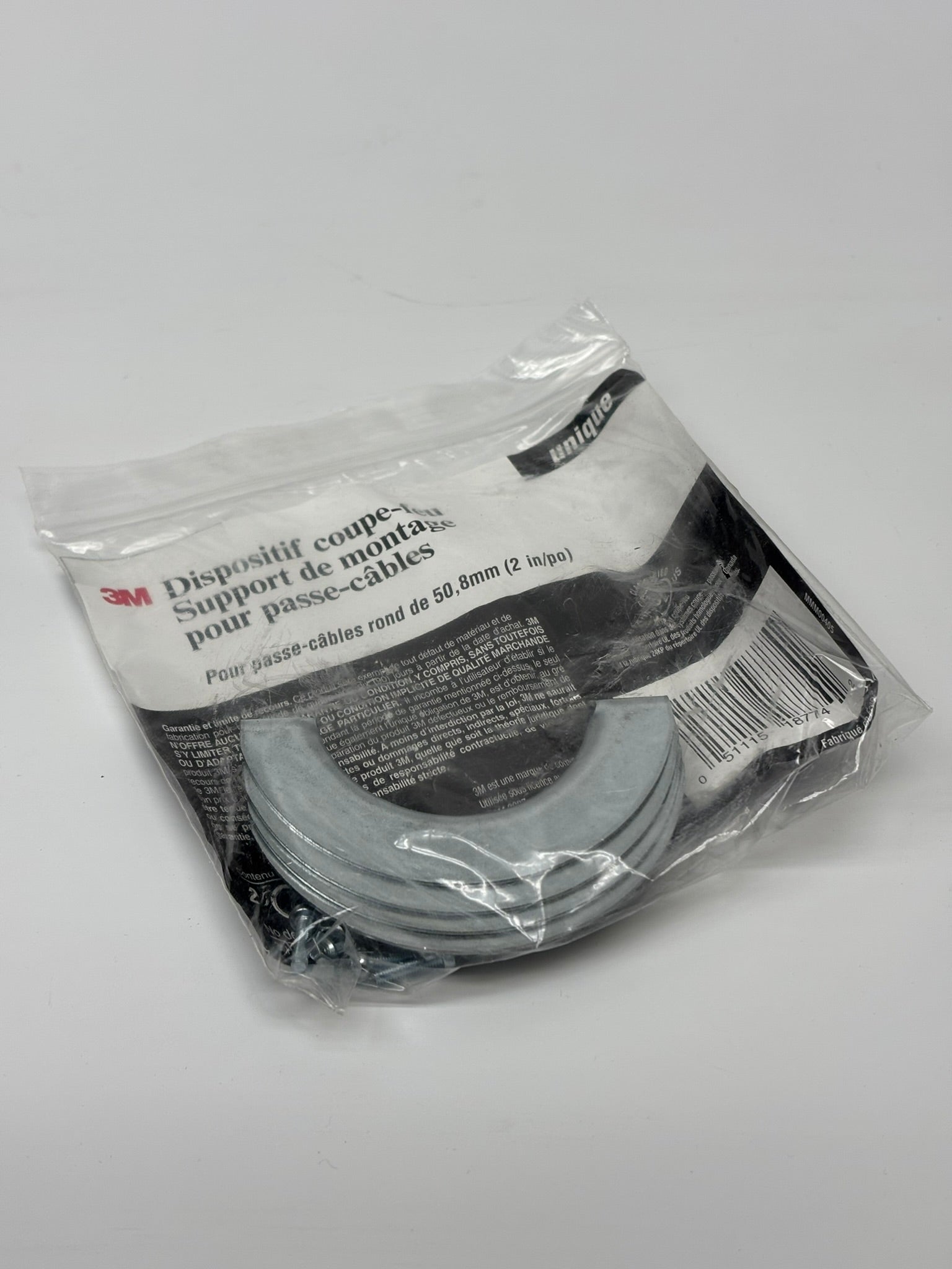 The 3M Fire Barrier Pass-Through Mounting Brackets PT2RMB (98040055406) provide secure mounting for 3M Fire Barrier Pass-Through Devices. These 2-inch round brackets come with screws for easy installation on both sides of an assembly, enhancing fire and smoke protection. Designed to work with intumescent material and foam smoke seals, they help prevent the spread of fire and smoke. Ideal for cable management in firestop applications. 24 pairs per case.