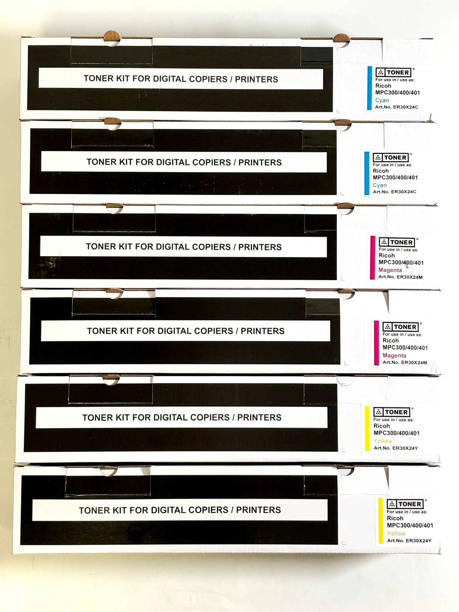 Lot of 6 New Compatible Ricoh CCMMYY Cyan, Magenta and Yellow Toner Cartridges