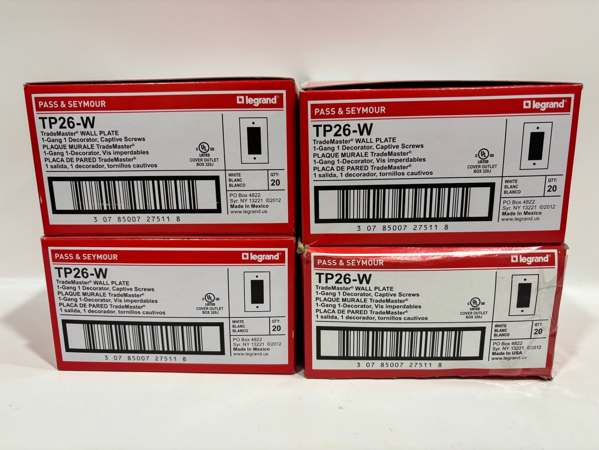 New 80pc Legrand TP26-W 1-Gang Nylon Wall Plate, 1 Decorator Opening