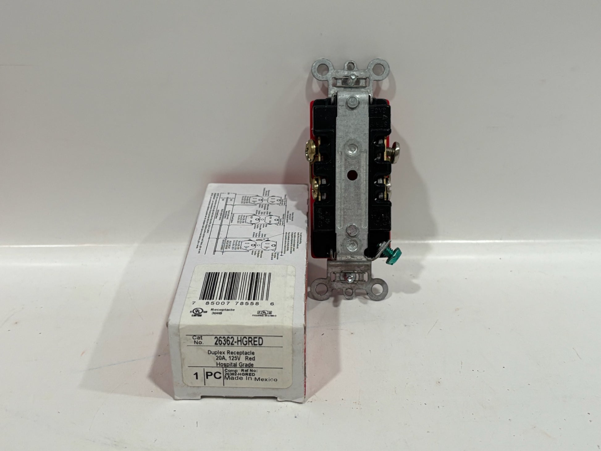The Legrand 26362‑HGRED is a 20 A, 125 V hospital-grade duplex receptacle featuring a durable nylon face and robust internal components. It includes a green dot for easy identification and built-in tamper-resistant shutters to enhance safety. The unit supports both back and side wiring for 10–12 AWG conductors and is designed with a corrosion-resistant brass mounting strap for secure installation.