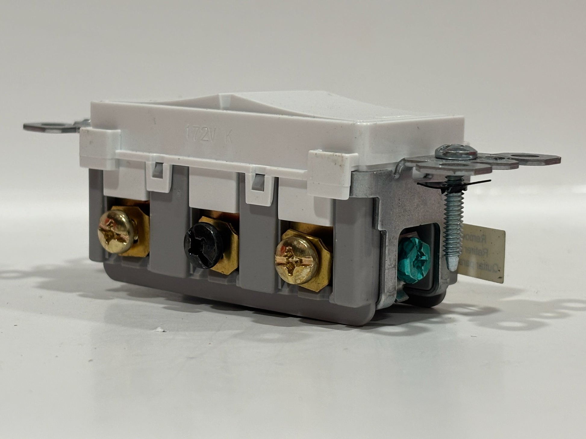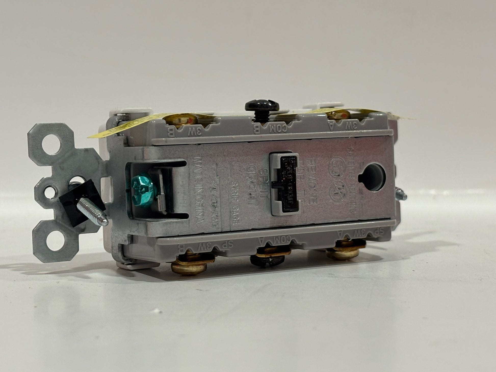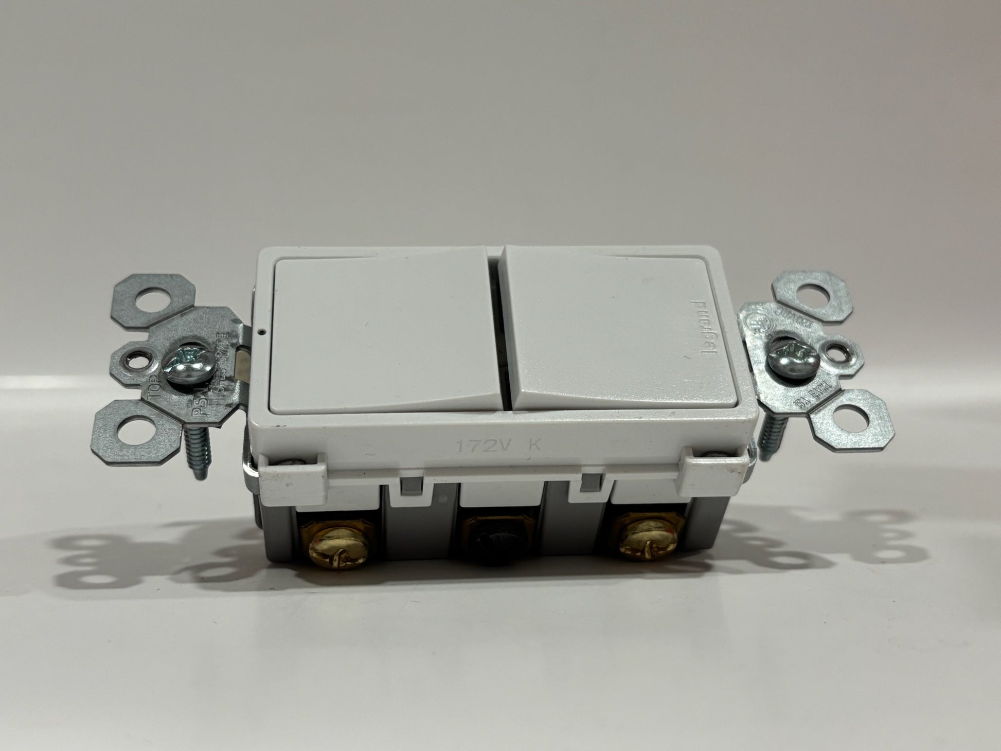 The Legrand RCD33W is a dual-function combination switch from the radiant® Collection, featuring two switches that can be configured as single-pole or 3-way, offering versatile control for lighting setups. Constructed with high-impact-resistant thermoplastic, it ensures durability and long-term reliability. Designed for easy installation, it fits into a single-gang box and includes captivated mounting screws for secure placement