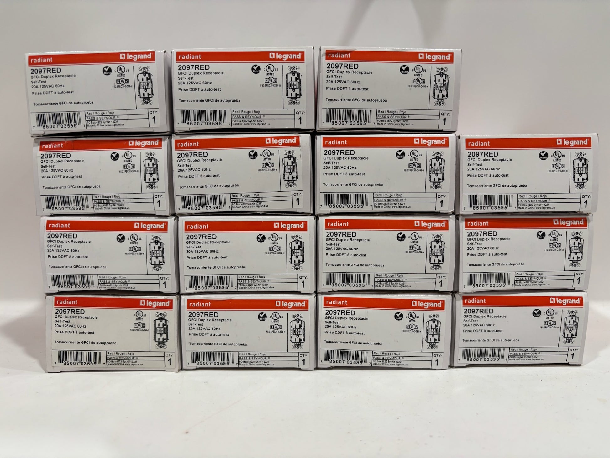 New 15 PC Legrand 2097RED 20A Duplex Self-Test GFCI Receptacles, Red