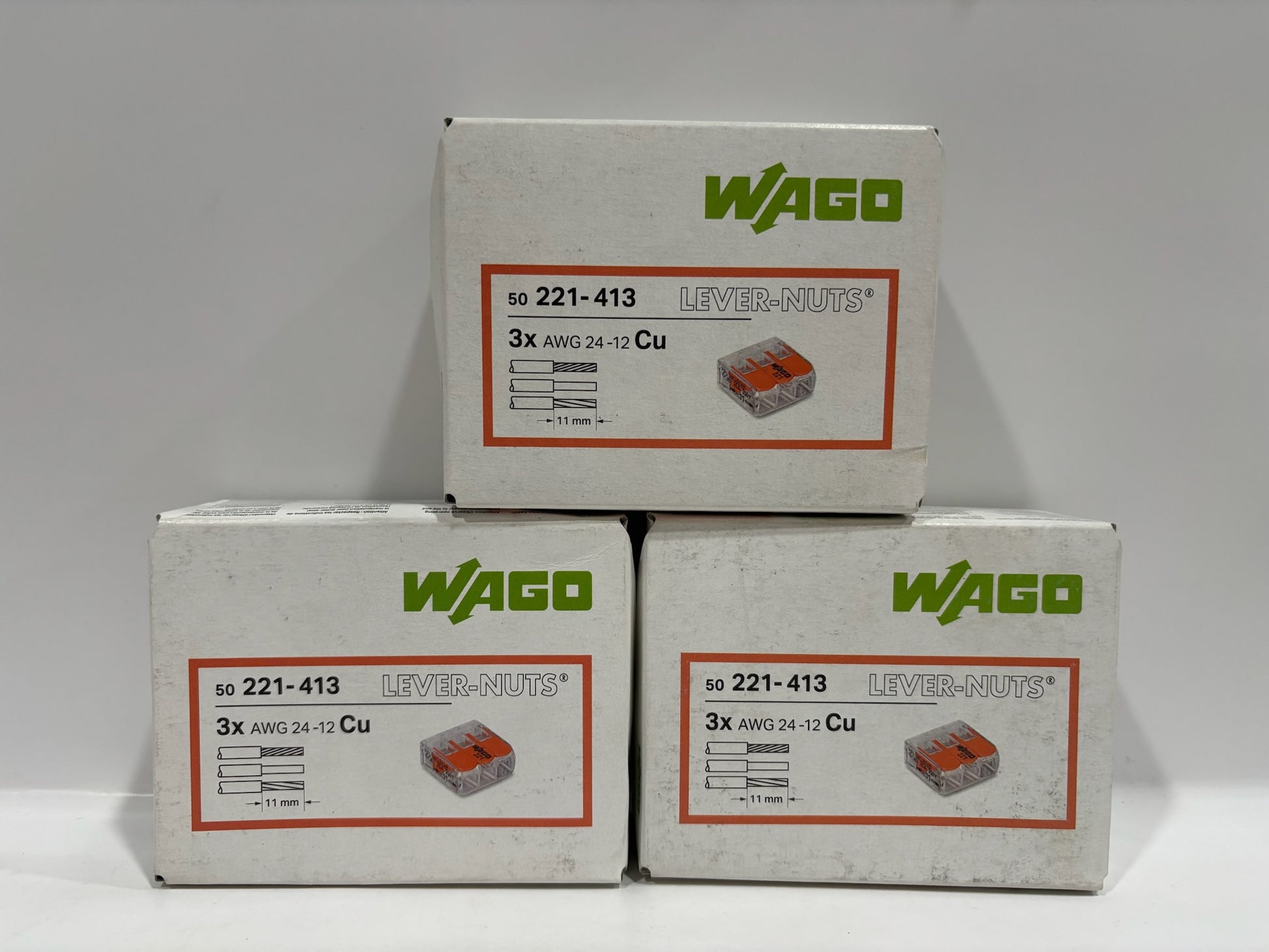 The new 150-piece Wago 221-413 3-Wire Lever Nuts offer a reliable and efficient solution for splicing solid, stranded, and fine-stranded wires. Featuring a compact, transparent housing, these connectors allow easy visual inspection of wire placement and ensure secure, tool-free connections with simple lever operation. Each unit accommodates three conductors and supports a wide range of wire sizes (24–12 AWG), making them ideal for residential, commercial, and DIY electrical applications.