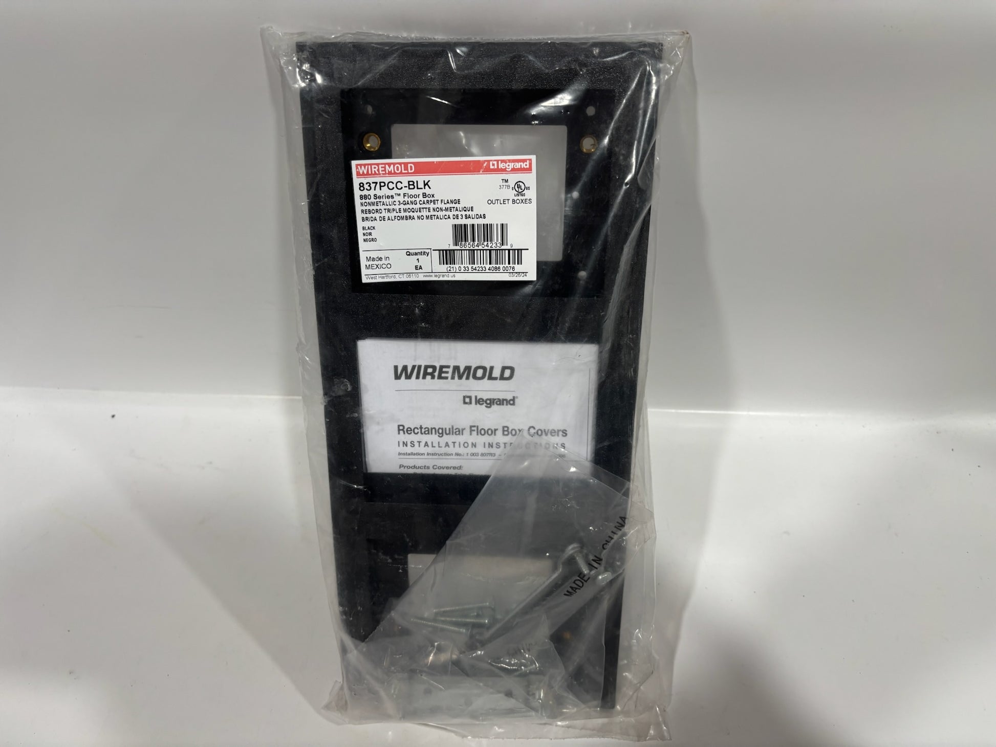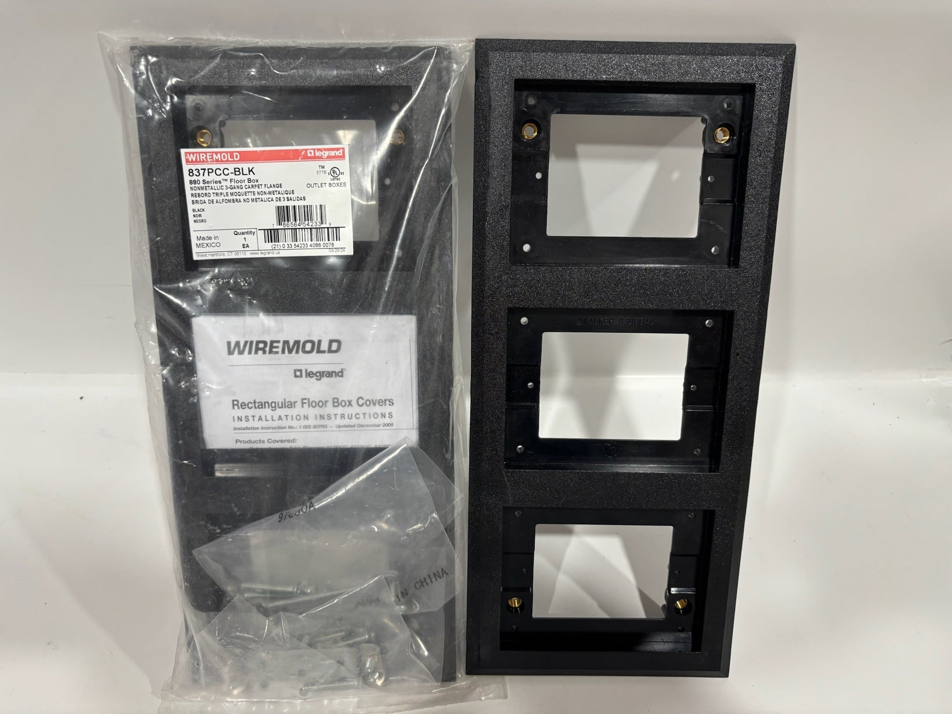 New 2PC WireMold 837PCC-BLK Non-Metallic 3-Gang Carpet Flange