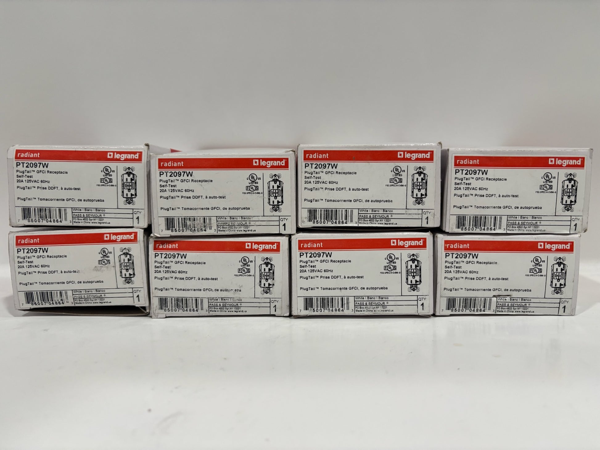 New 8PC Legrand PT2097W GFCI Self-Test Outlet with LED Light, White
