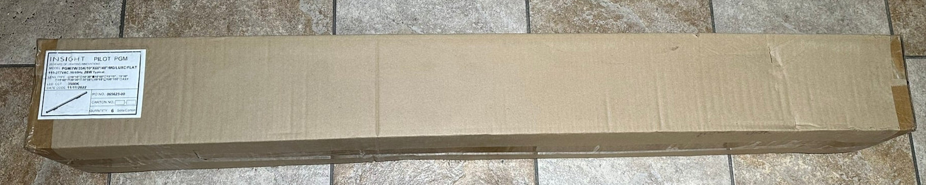 The Insight PGM/7W/35K/10°X60°/48"/MG/LUXC/FLAT is a high-performance LED linear fixture designed for architectural grazing applications. With a power consumption of 7 watts per foot and a color temperature of 3500K, it delivers a balanced white light suitable for various indoor environments. The fixture features a unique 10° x 60° asymmetric optic, providing precise light distribution ideal for wall grazing effects. Measuring 48 inches in length, it offers a compact form factor that integrates seamlessly into architectural spaces. The "MG" designation indicates a matte gray finish, while "LUXC" suggests a lux control option, allowing for customized lighting effects. This product is brand new, in box, and the "FLAT" profile ensures a low-profile installation, making it suitable for concealed or recessed applications.