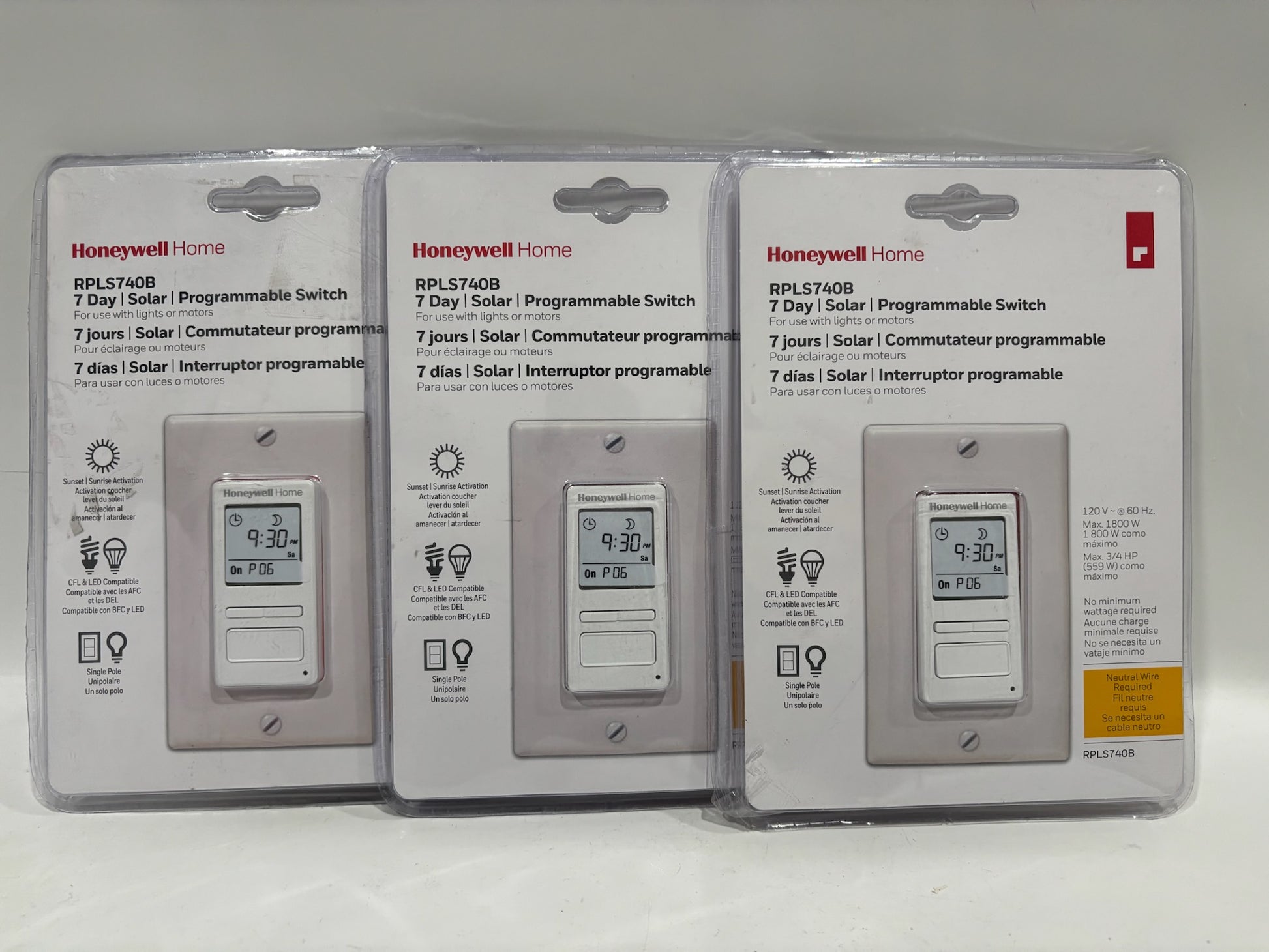 New Open 3PK HoneyWell RPLS740B 7-Day Solar Programmable Switch