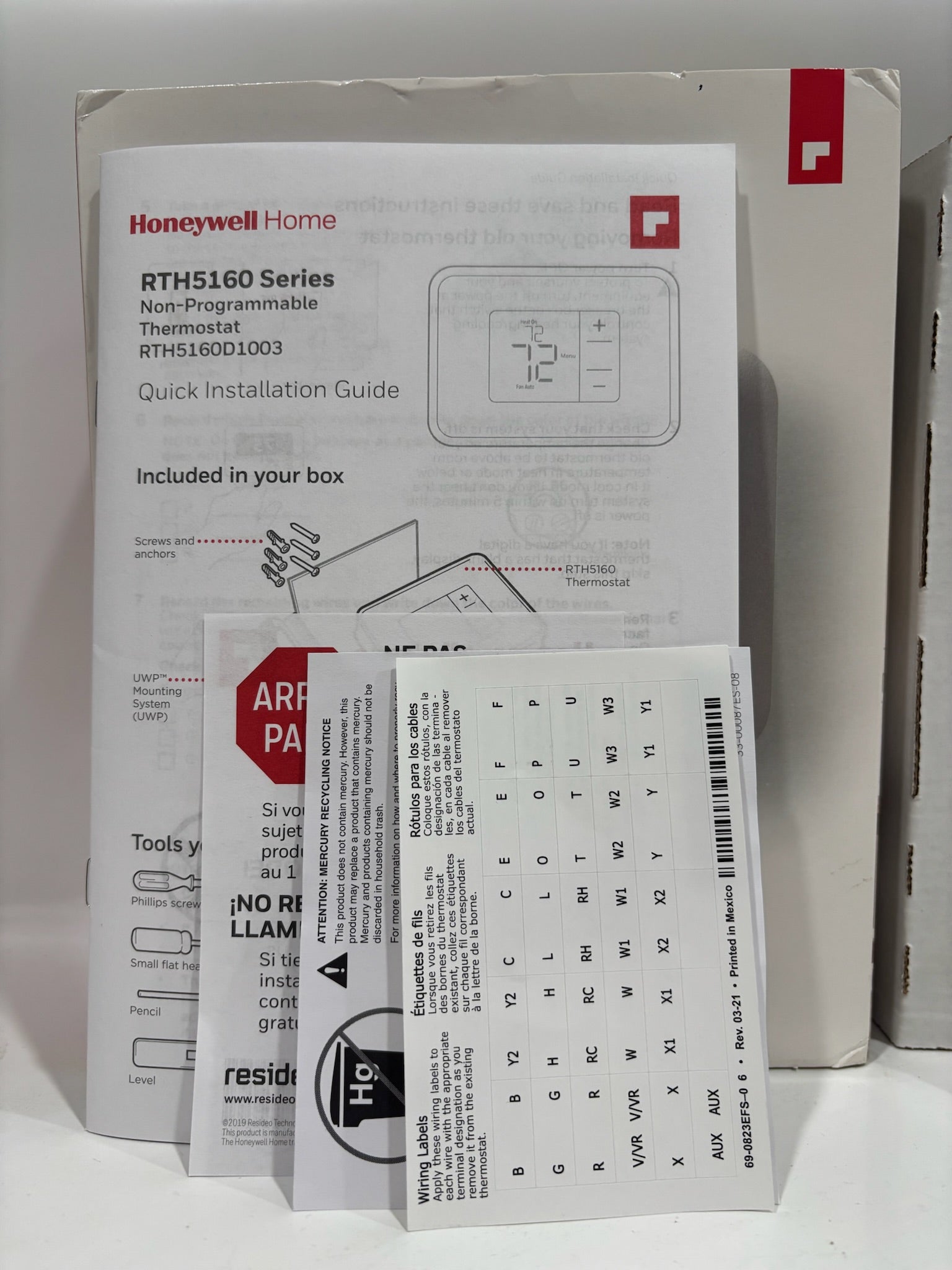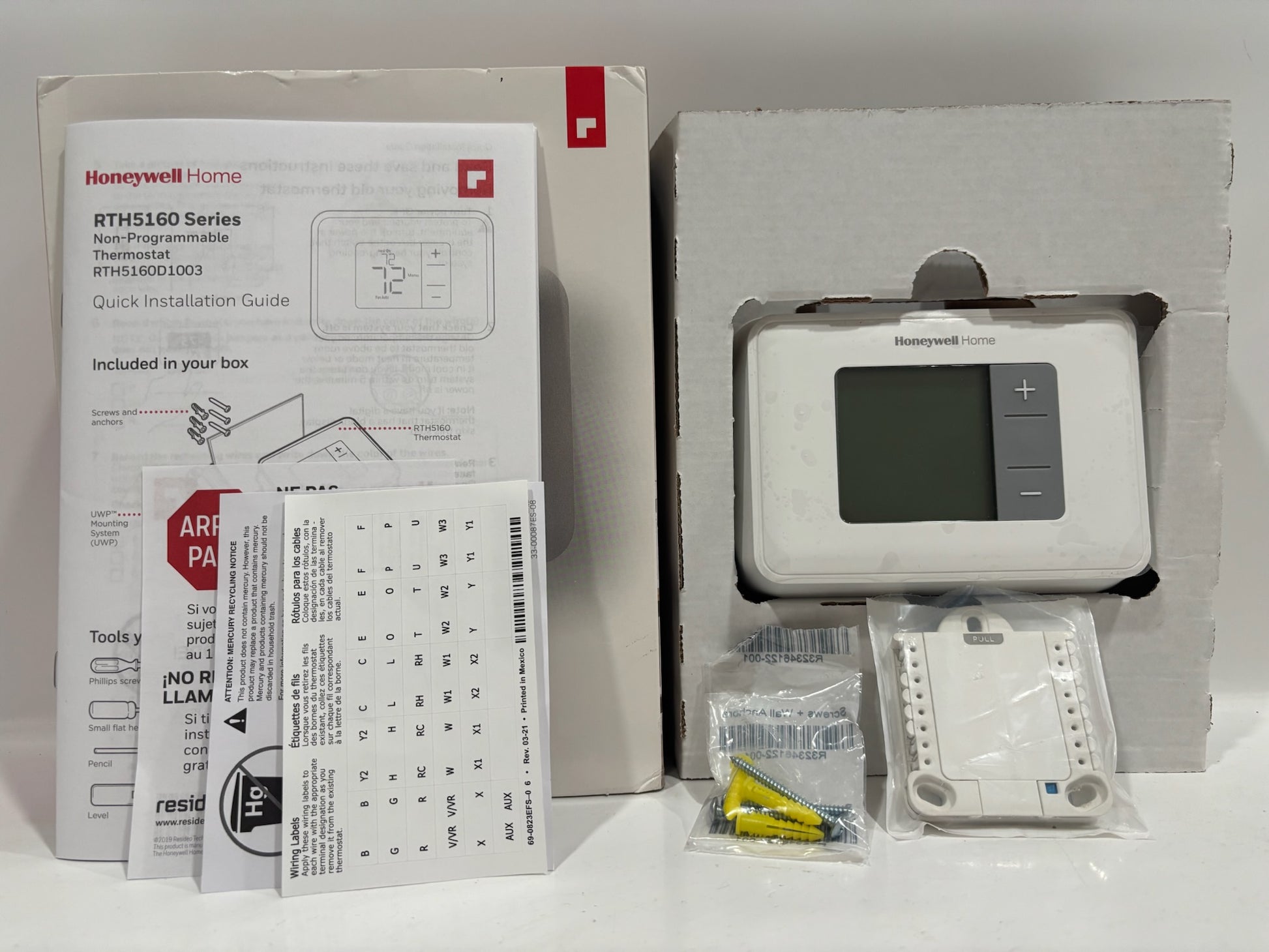 The Honeywell T2 Non-Programmable Thermostat offers reliable temperature control with a straightforward, easy-to-use digital interface. It features precise +/-1°F temperature accuracy to maintain consistent indoor comfort. Designed for compatibility with most standard heating and cooling systems, it ensures broad application across various home setups. The simple design makes installation and operation quick and hassle-free, ideal for both new and replacement installations.