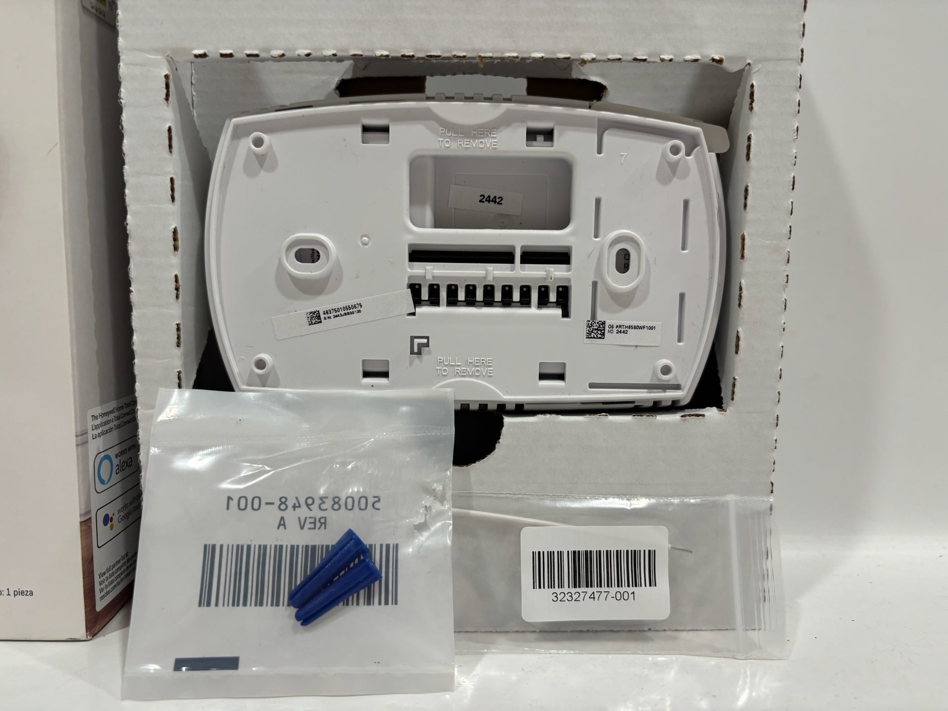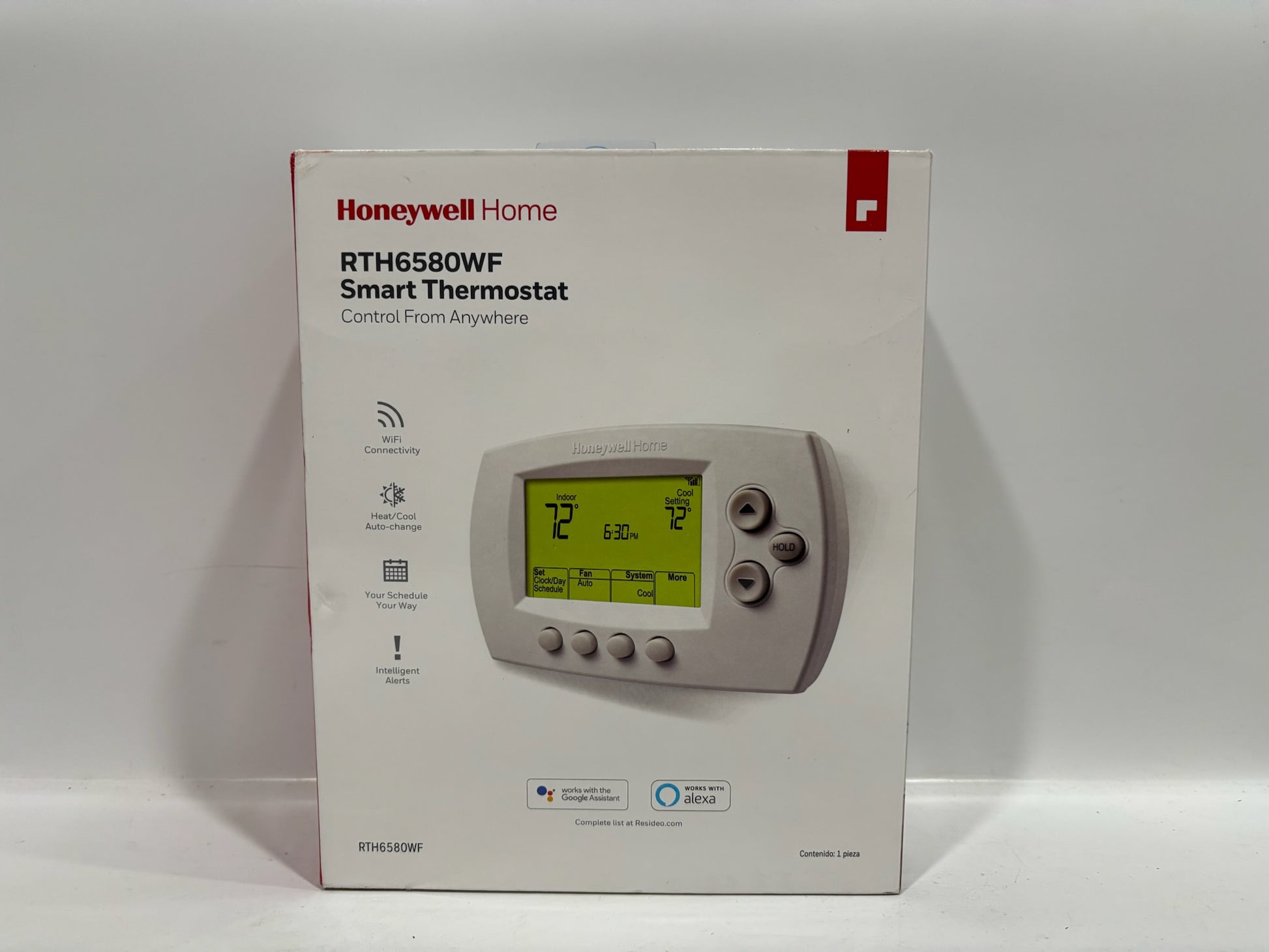 The Honeywell RTH6580WF is a Wi-Fi-enabled, 7-day programmable thermostat that allows you to control your home’s temperature remotely using a smartphone, tablet, or computer. It features customizable daily scheduling with up to four time periods per day and uses Smart Response Technology to ensure your desired temperature is reached when needed. The thermostat is compatible with popular voice assistants like Amazon Alexa and Google Assistant, making it easy to integrate into your smart home.