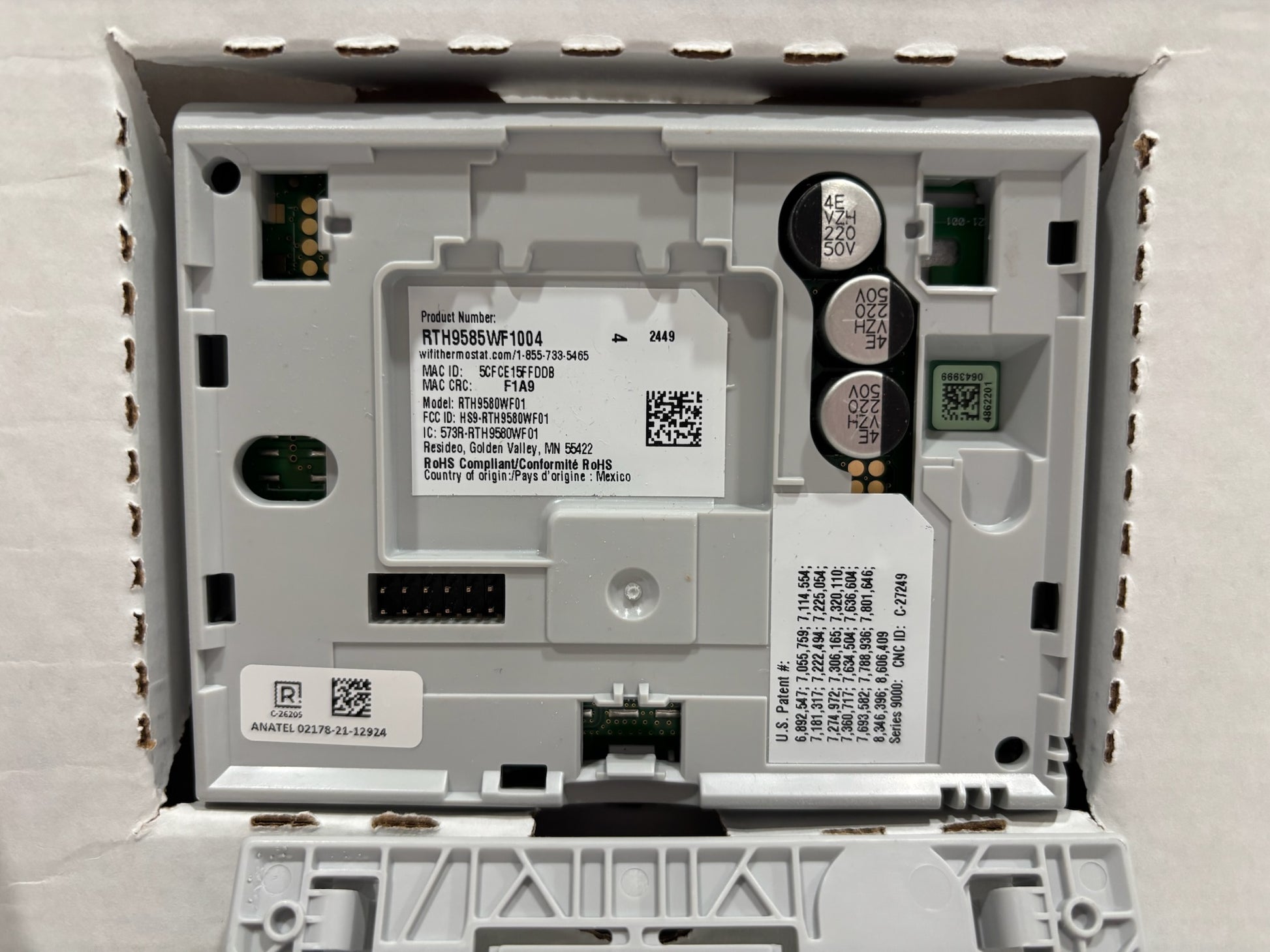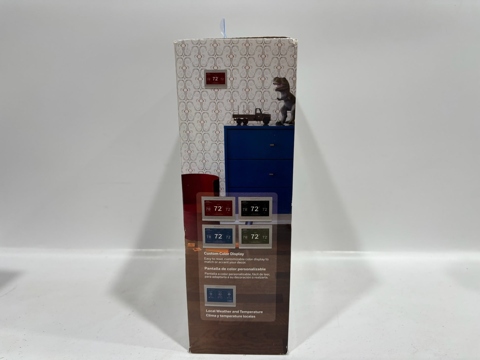 The Honeywell RTH9585WF is a Wi-Fi-enabled smart thermostat featuring a vibrant, fully customizable color touchscreen display that complements any décor while showing temperature, humidity, and weather information. It uses Smart Response Technology to learn your heating and cooling cycles, providing comfort when you need it while improving energy efficiency. The thermostat can be controlled remotely through a mobile app or with voice assistants like Alexa and Google Assistant. With a 7-day programmable schedule, automatic heating and cooling changeover, and ENERGY STAR certification, it delivers modern convenience and reliable climate control.