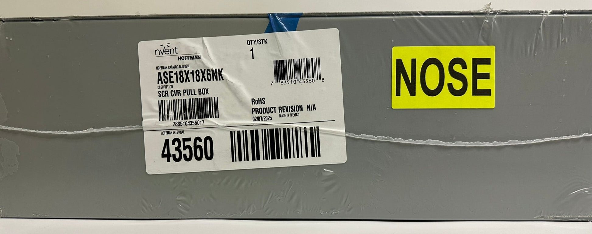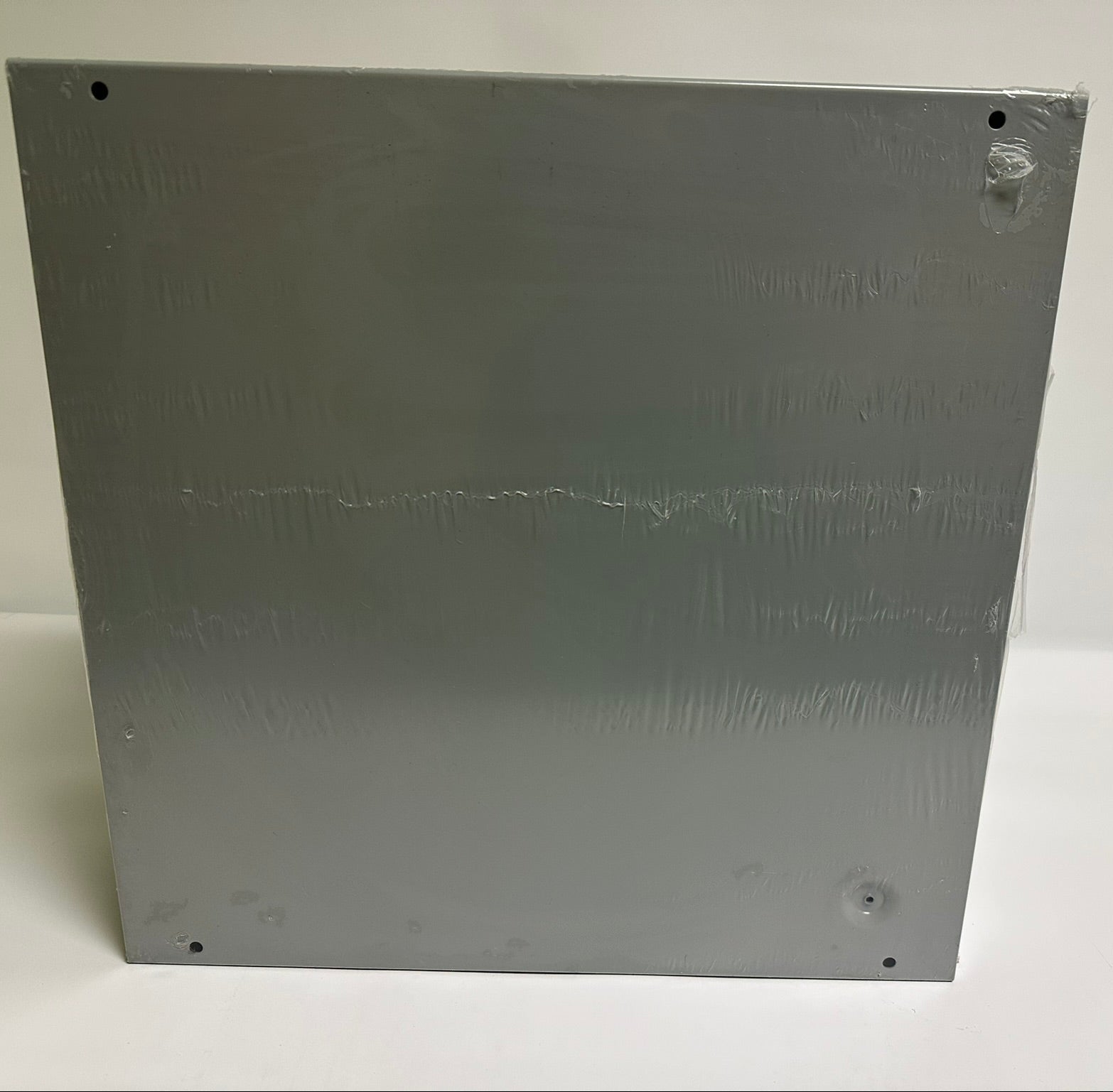 The nVent Hoffman ASE18X18X6NK is a NEMA Type 1 screw-cover enclosure, measuring 18 inches in height, 18 inches in width, and 6 inches in depth. Constructed from mild steel with a powder-coated gray finish, it is designed for indoor use in commercial and general industrial applications requiring a junction or pull box. This model does not include knockouts, offering flexibility for custom cable entry configurations. The enclosure features flat, removable covers secured with plated steel screws, and incorporates unique keyhole slots for easy cover removal. It also provides provisions for grounding and mounting holes on the back for secure wall installation. This unit may have minor surface scratches that are cosmetic only and do not affect its performance or compliance with UL 50 and 50E, cUL per CSA C22.2 No. 40, NEMA/EEMAC Type 1, and IEC 60529, IP30 standards.