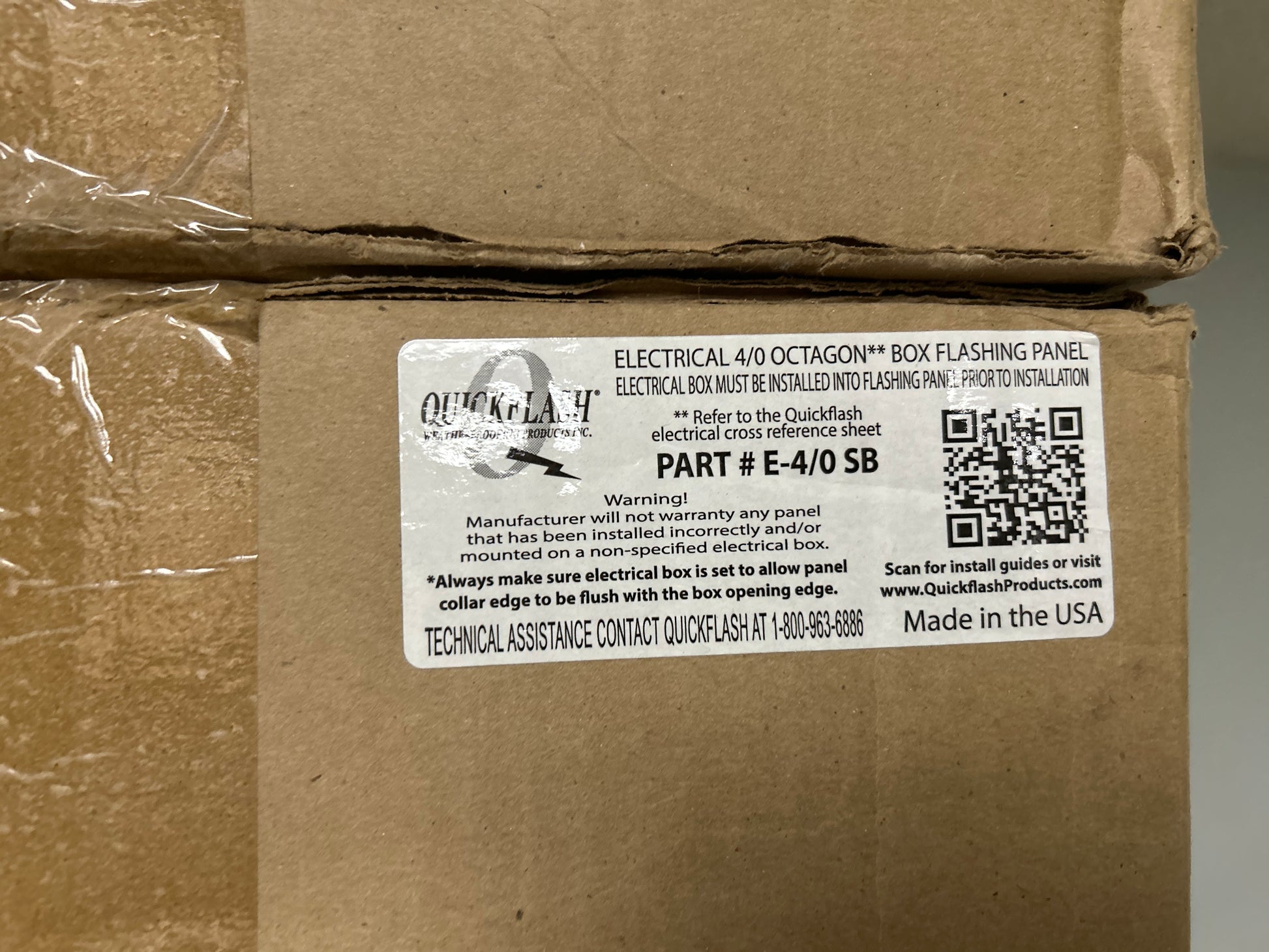 Safeguard your outdoor electrical boxes with Quickflash Weatherproofing Panels. This set of 24 octagon steel box flashing panels (part # E-4/0 SB) provides reliable protection against the elements. Designed by industry experts, these panels offer a durable and weather-resistant solution for any construction project.