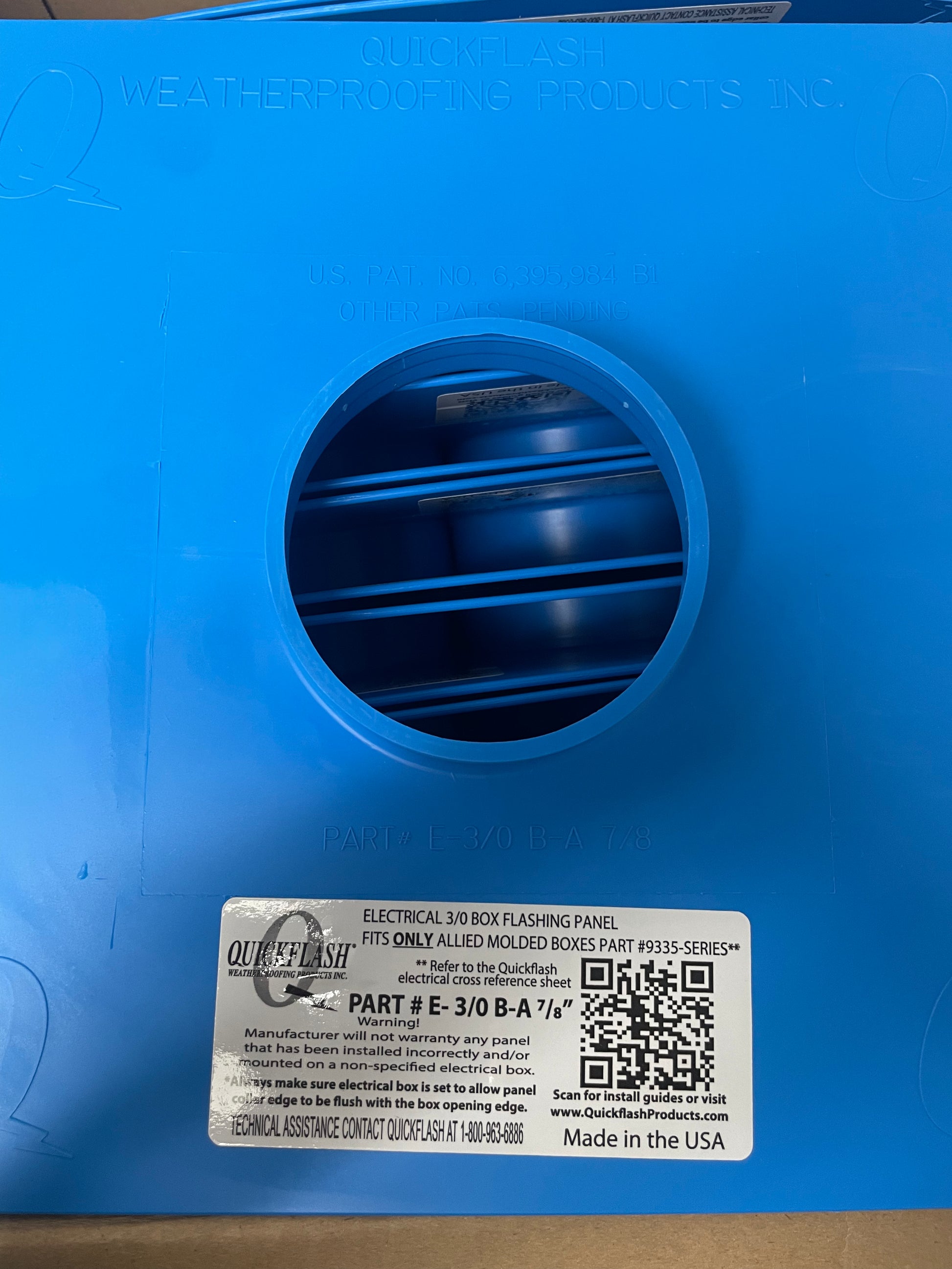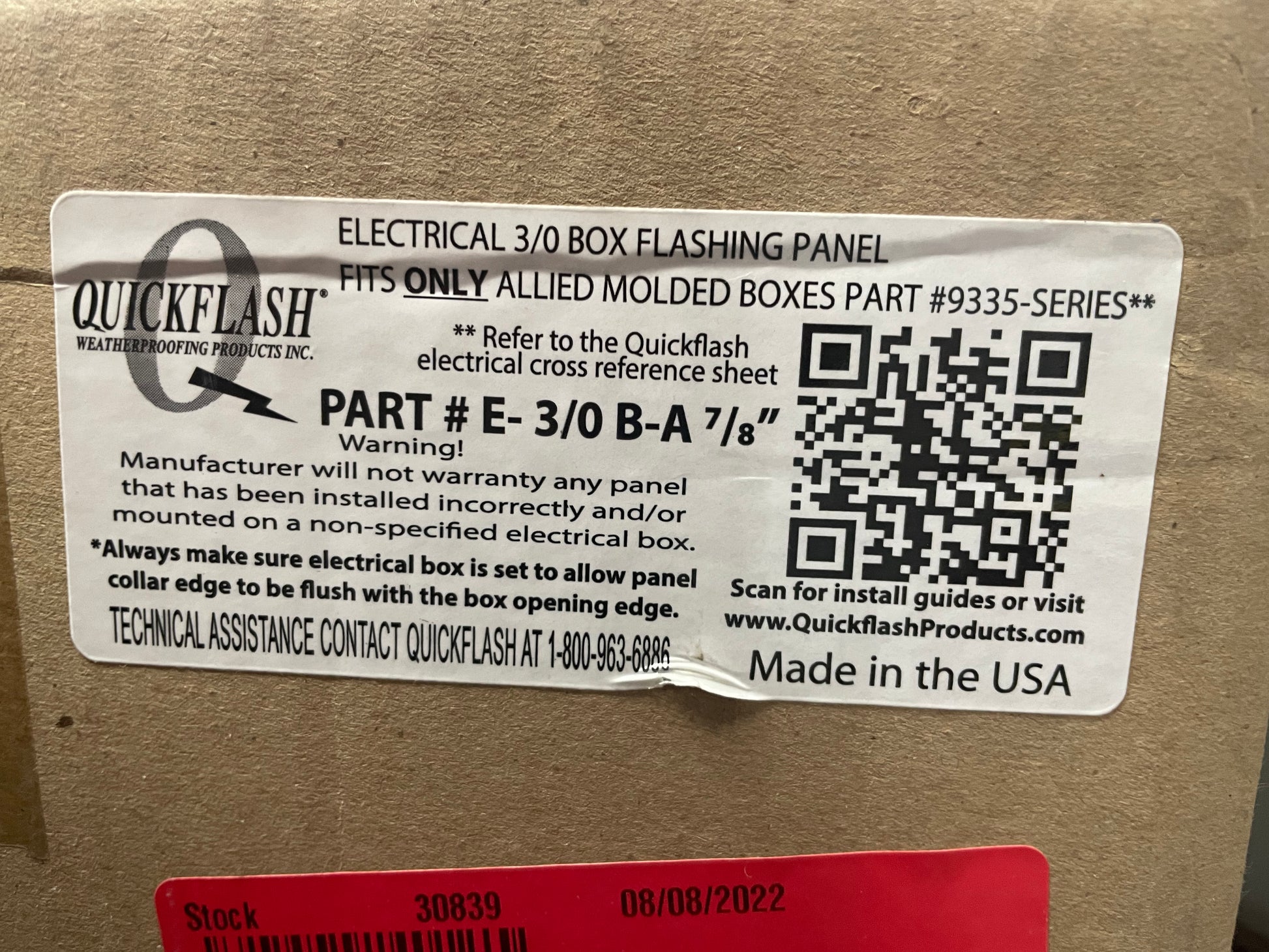 QUICKFLASH (Part: # E- 3/0 B-A 7/8) ELECTRICAL 3/0 Box Flashing Panels (24 Pack)