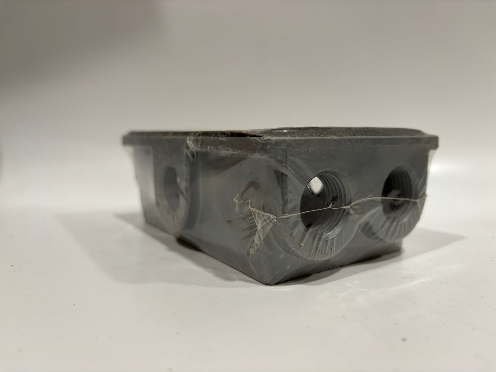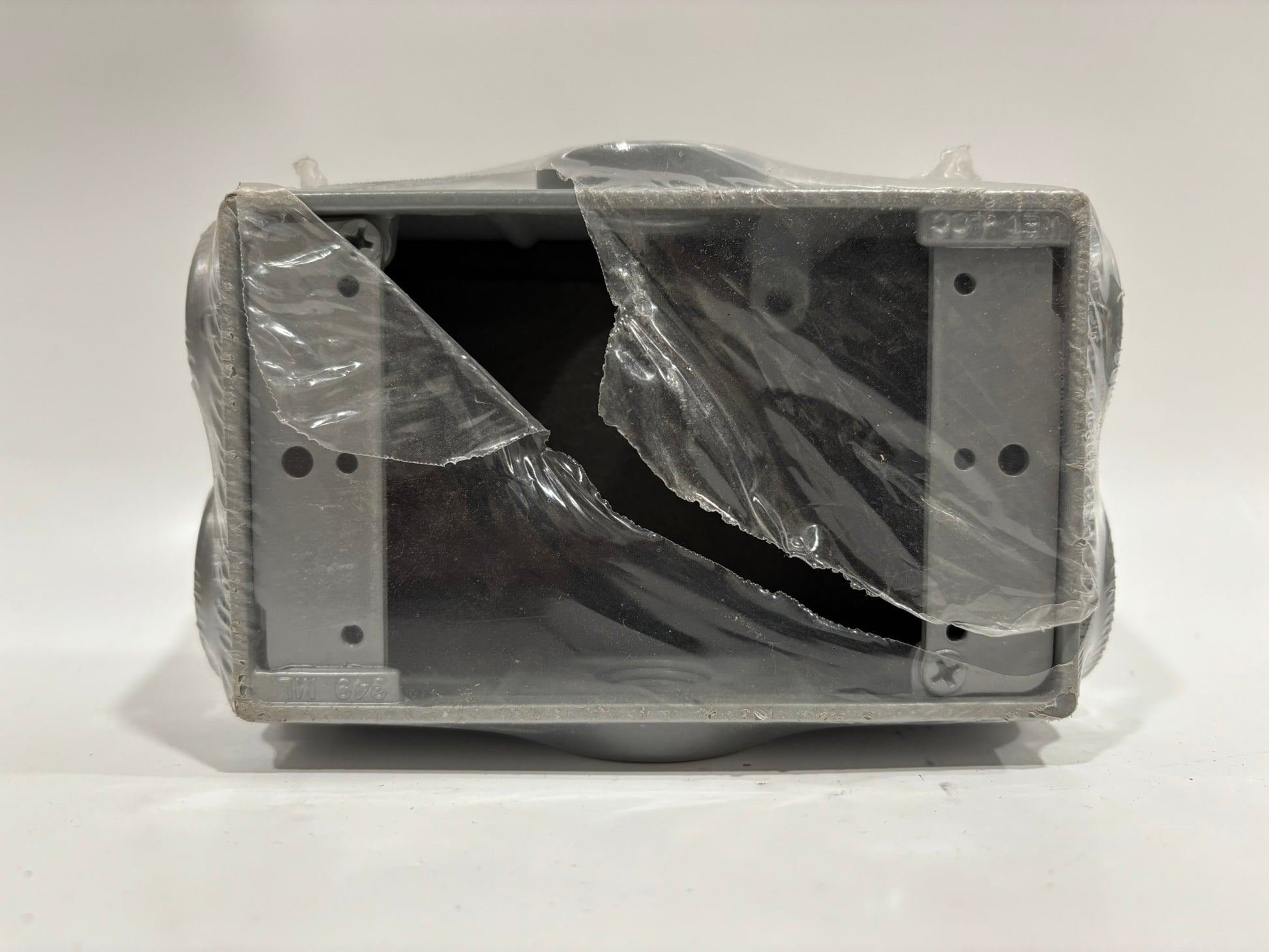 Durable 1‑gang flanged extension adapter made from die‑cast A380 aluminum. Measures 4½″ L × 3½″ W × 1⅞″ D (21.3 cu in). Features sturdy threaded hub entries (½″ knockout), gasket, plug, screws, and secure mounting lugs. Powder‑coated finish ensures corrosion resistance; ideal for extending weatherproof outlet or switch boxes in dry, damp or wet locations.