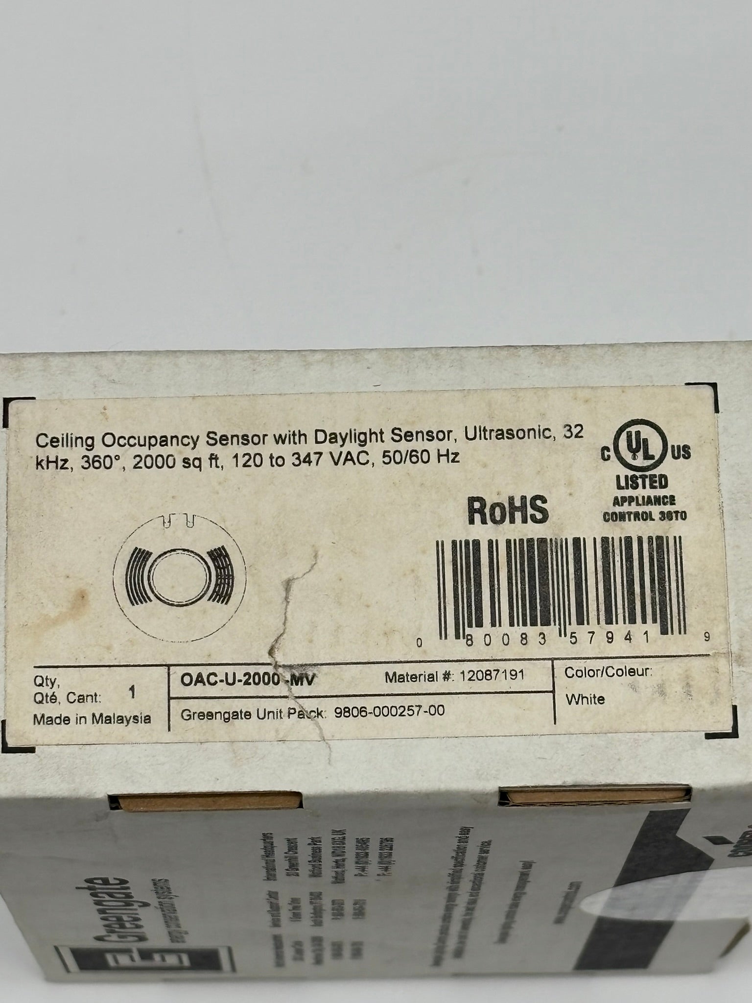 OAC-U-2000-MV MicroSet Ceiling Daylight Sensor, Ultrasonic, 360 Degree, 2000 Square Feet, 120 to 347 VAC, 50/60 Hz